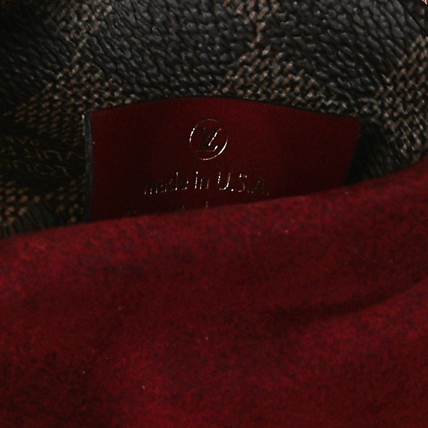 This is an authentic LOUIS VUITTON Damier Ebene Neonoe MM in Cherry Berry. This classic bucket-style shoulder bag is crafted of Louis Vuitton Damier coated canvas in brown. The bag features an adjustable burgundy leather shoulder strap and top cinch strap with polished brass hardware. The top is open to a partitioned matching burgundy microfiber interior with a central zipper pocket to keep you organized.Follow this item for alerts. Louis Vuitton is a registered trademark of Louis Vuitton. FASHIONPHILE is not affiliated with Louis Vuitton.