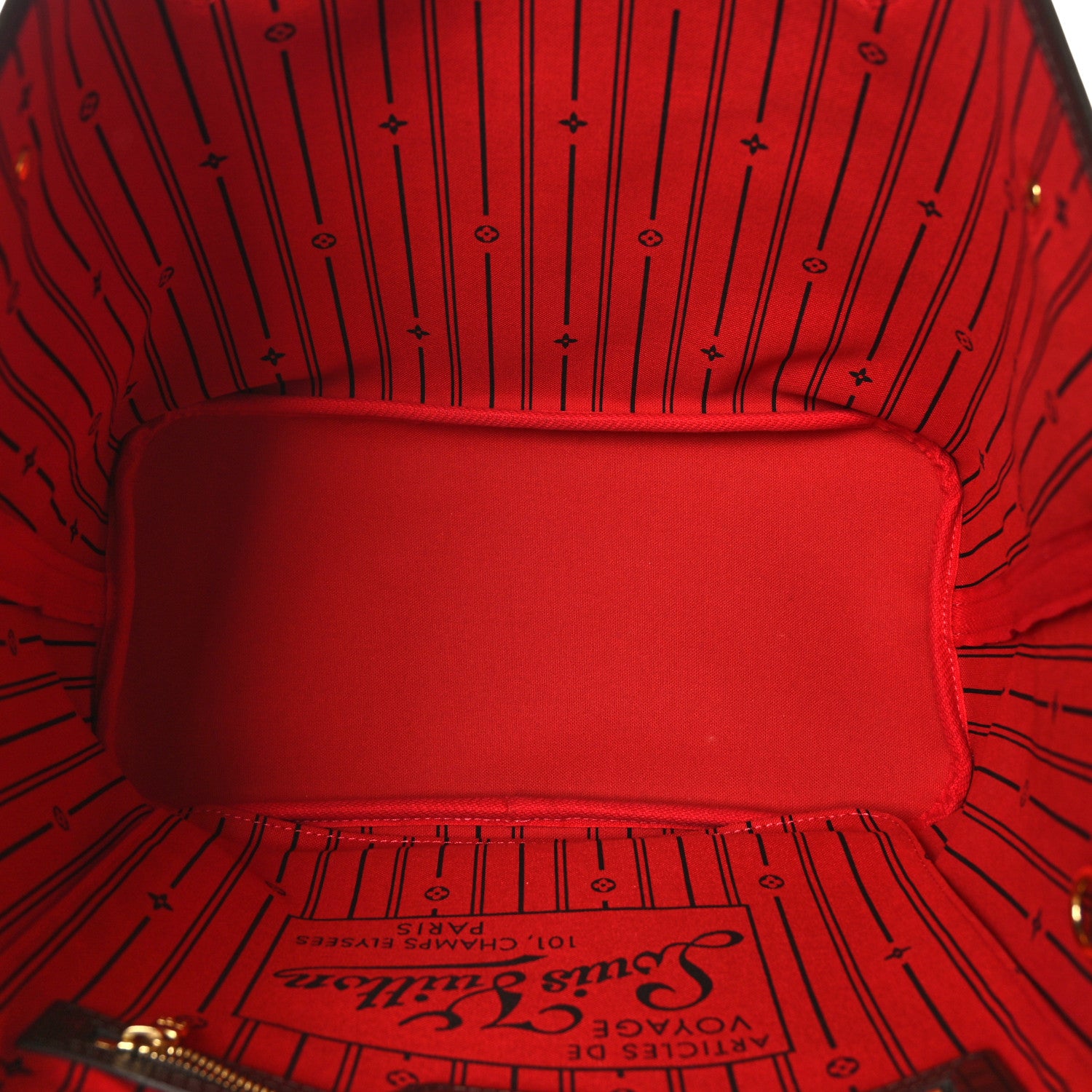 This is an authentic LOUIS VUITTON Damier Ebene Neverfull MM. This chic tote bag is crafted of classic Louis Vuitton checkerboard coated canvas in brown with dark brown cowhide leather shoulder straps, trim, and side cinch cords, with gold-toned hardware. The top is open to a rouge red striped fabric with a hanging zipper pocket.Follow this item for alerts. Louis Vuitton is a registered trademark of Louis Vuitton. FASHIONPHILE is not affiliated with Louis Vuitton.