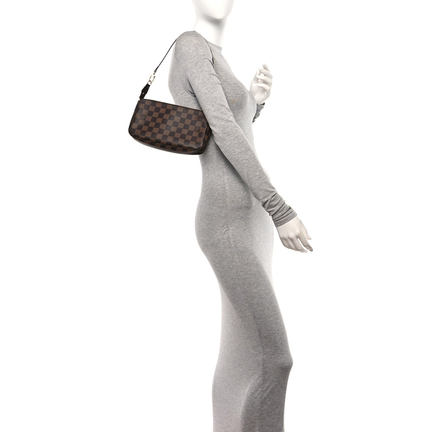 This is an authentic LOUIS VUITTON Damier Ebene Pochette Accessories NM. This pochette is crafted of Louis Vuitton's signature checkerboard coated canvas in brown with a brown leather shoulder strap and gold-toned hardware. The top zipper opens to a red fabric interior with a patch pocket.Follow this item for alerts. Louis Vuitton is a registered trademark of Louis Vuitton. FASHIONPHILE is not affiliated with Louis Vuitton.