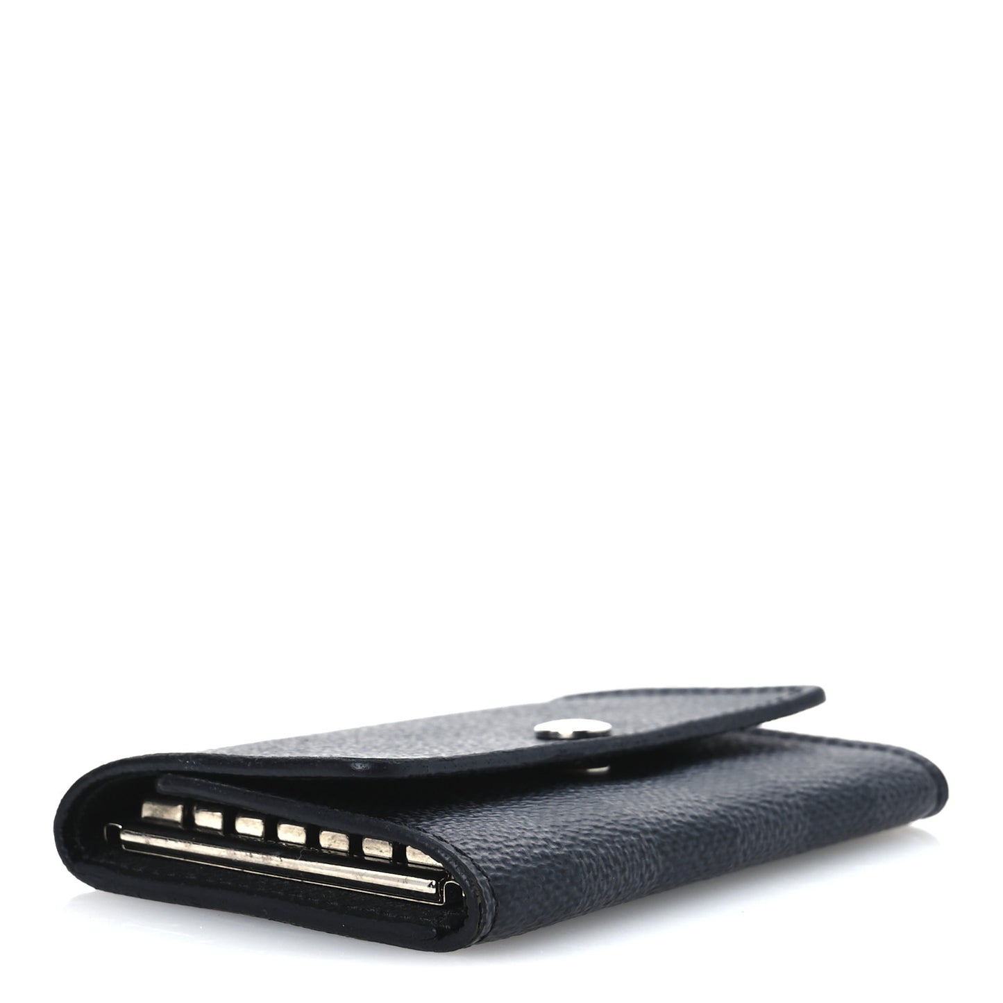 This is an authentic LOUIS VUITTON Damier Graphite Multicles 6 Key Holder. This stylish key holder is crafted of Louis Vuitton's signature Damier graphite coated canvas. The flap opens with a silver snap to a black cross-grain leather interior with six silver key rings.Follow this item for alerts. Louis Vuitton is a registered trademark of Louis Vuitton. FASHIONPHILE is not affiliated with Louis Vuitton.