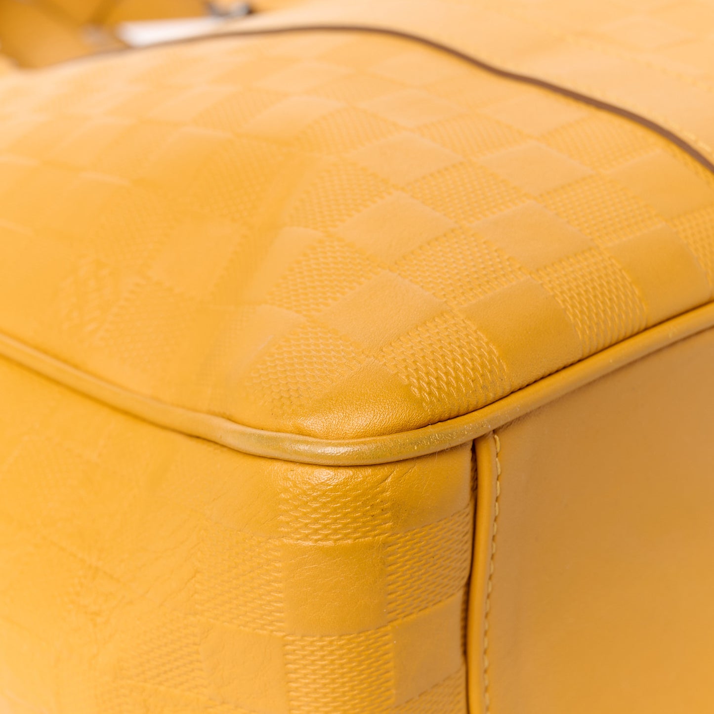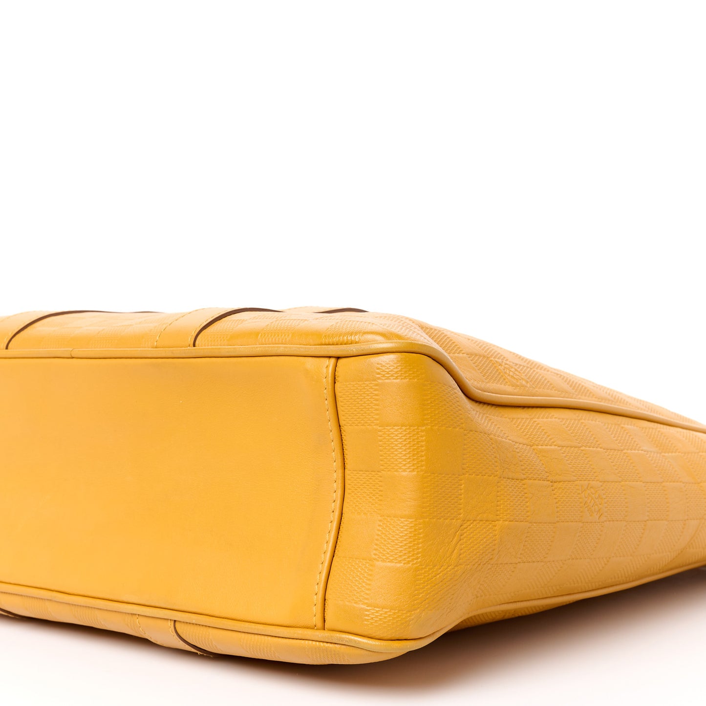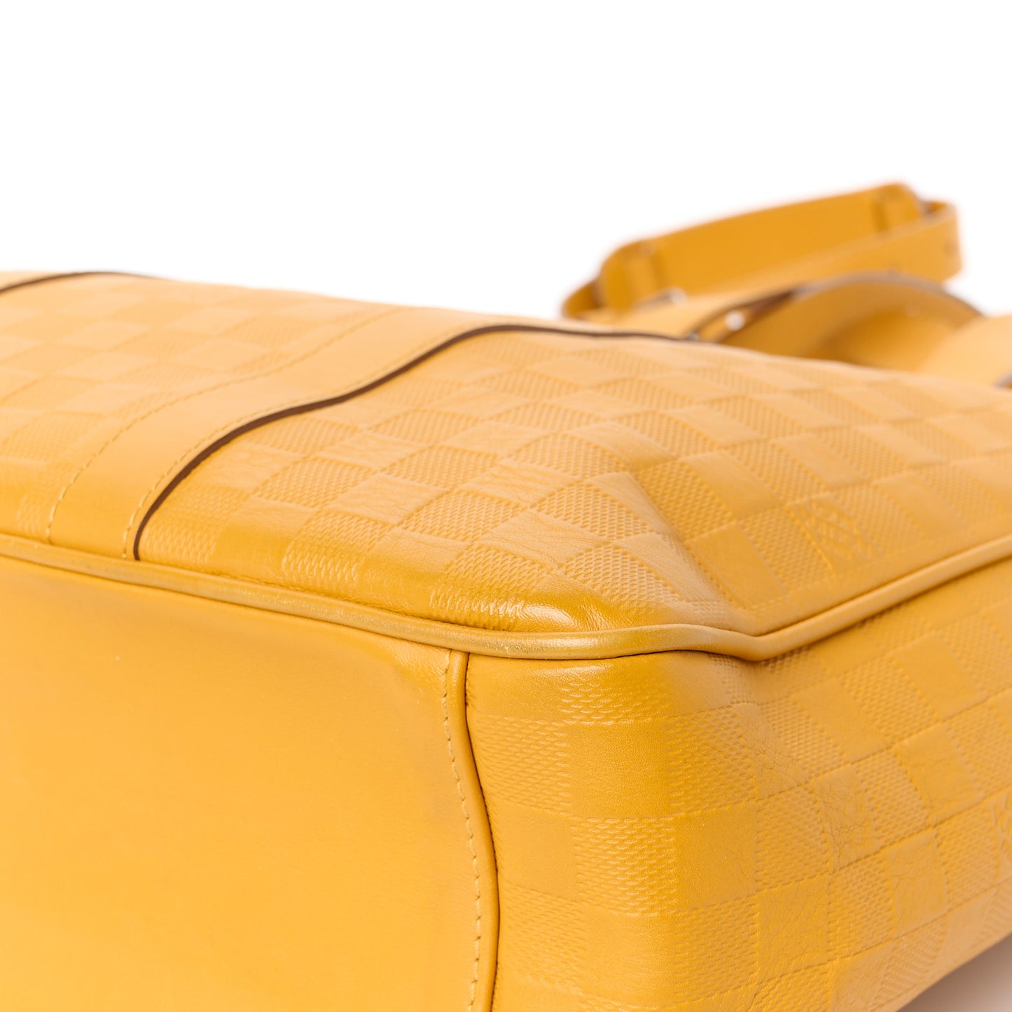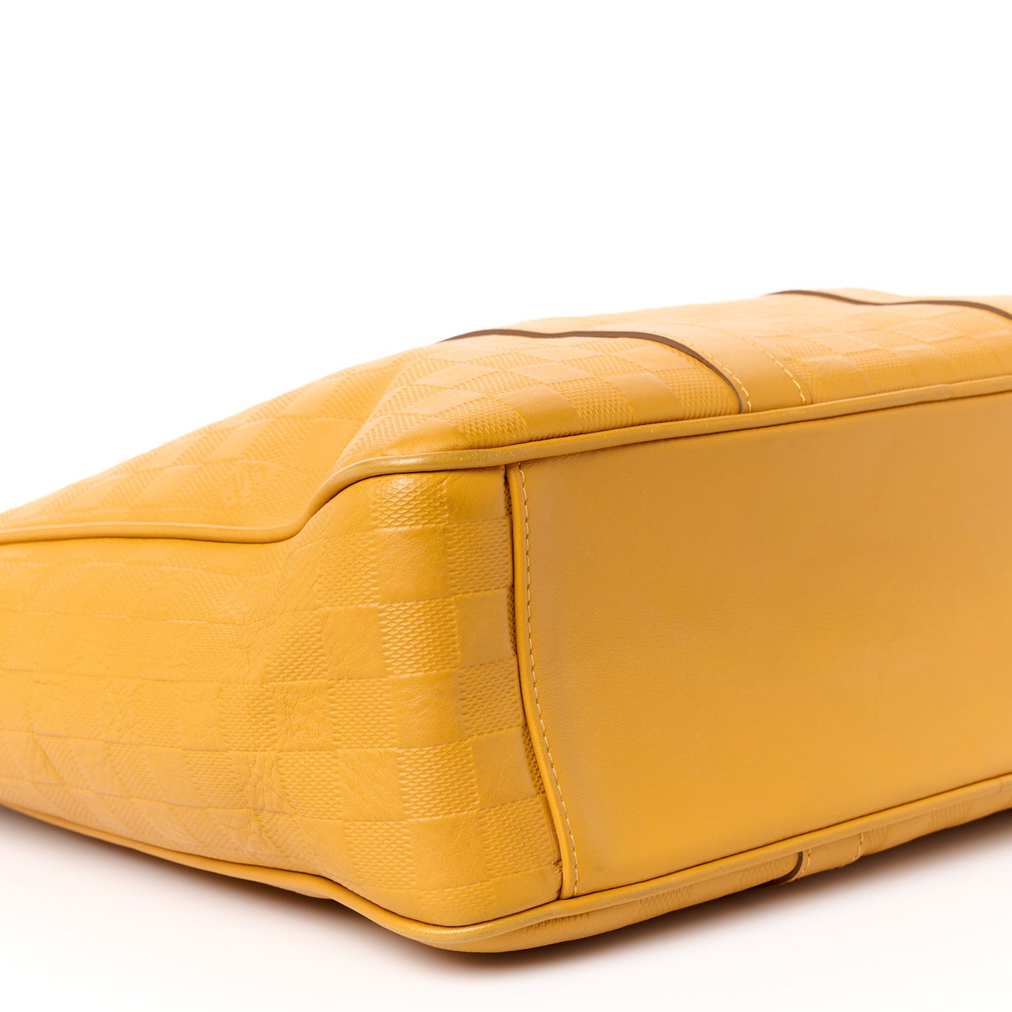 This is an authentic LOUIS VUITTON Damier Infini Tadao in Solar. This stylish tote is crafted of Louis Vuitton signature damier check embossed leather in golden yellow. The bag features leather strap top handles with matte dark silver links and an optional shoulder strap with matching clasps. The top zipper opens to a dark brown fabric interior with pockets.Follow this item for alerts. Louis Vuitton is a registered trademark of Louis Vuitton. FASHIONPHILE is not affiliated with Louis Vuitton.