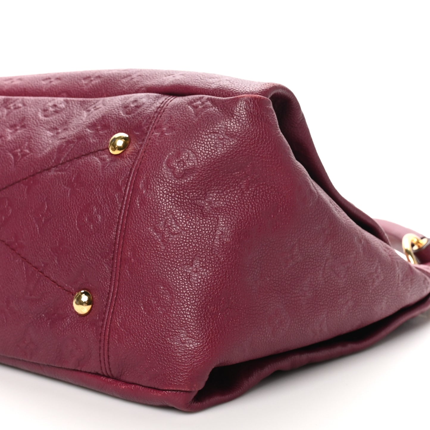 This is an authentic LOUIS VUITTON Empreinte Artsy MM in Flamme. This shoulder bag is crafted of Louis Vuitton monogram embossed calfskin leather in dark red. The bag features a thick leather shoulder strap with woven detail and polished gold-toned hardware. The top is open to a dark red striped fabric interior with zipper and patch pockets.Follow this item for alerts. Louis Vuitton is a registered trademark of Louis Vuitton. FASHIONPHILE is not affiliated with Louis Vuitton.