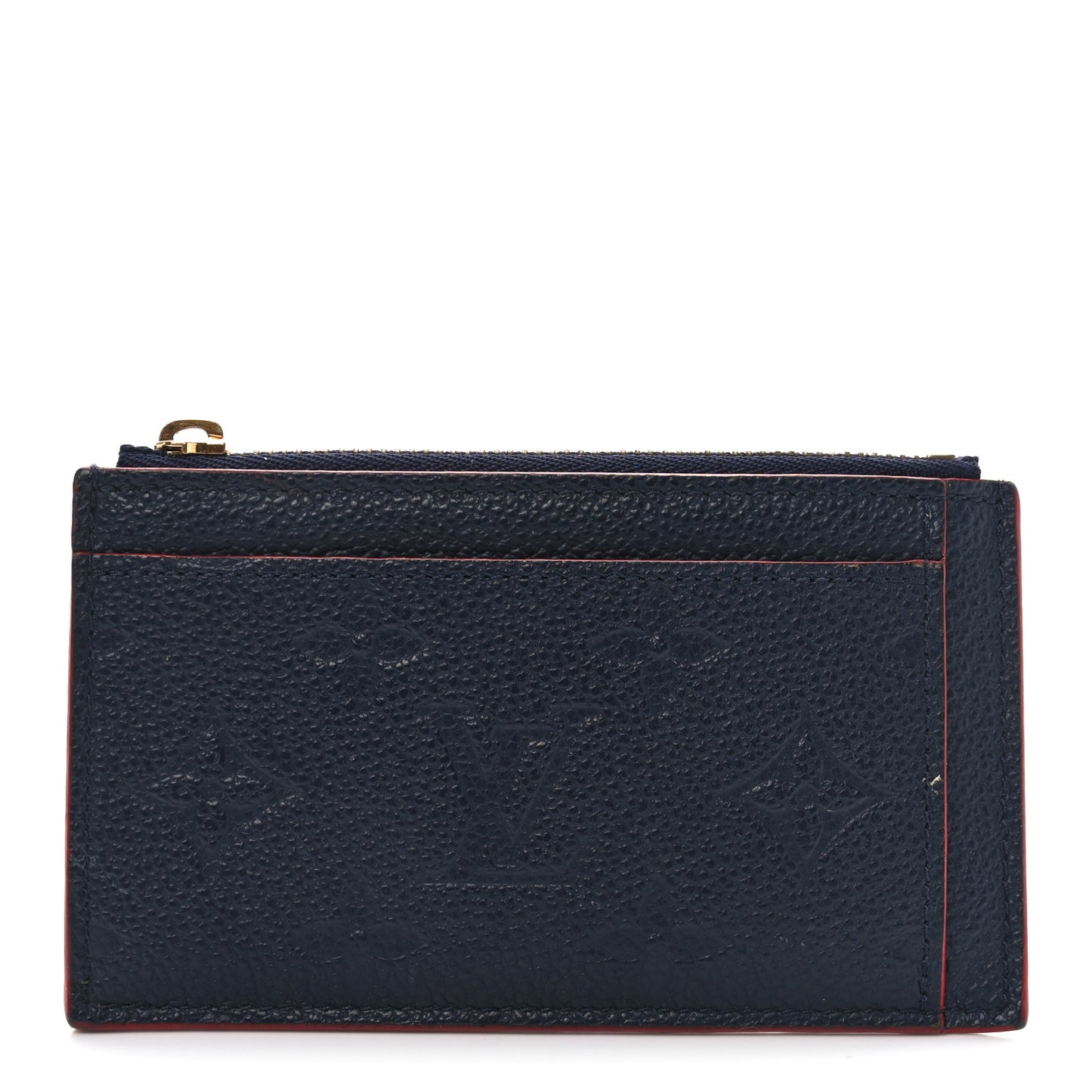 This is an authentic LOUIS VUITTON Empreinte Blooming Flowers Zipped Card Holder in Marine and Rouge. This stylish wallet is crafted of Louis Vuitton monogram-embossed leather in navy blue, with a patch pocket on the front. The polished brass top zipper opens the wallet to a matching leather interior.Follow this item for alerts. Louis Vuitton is a registered trademark of Louis Vuitton. FASHIONPHILE is not affiliated with Louis Vuitton.