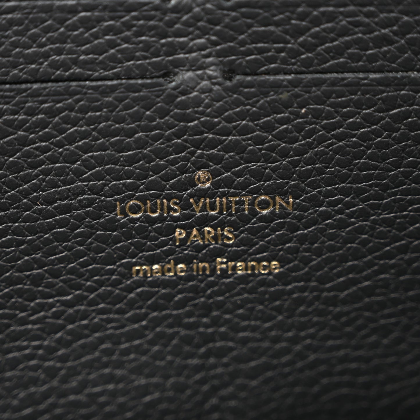 This is an authentic LOUIS VUITTON Empreinte Clemence Wallet in Black. This wallet is crafted of monogram embossed calfskin leather in black. The polished gold wrap-around zipper opens to a partitioned black leather interior with card slots, patch pockets, and a zipper compartment.Follow this item for alerts. Louis Vuitton is a registered trademark of Louis Vuitton. FASHIONPHILE is not affiliated with Louis Vuitton.
