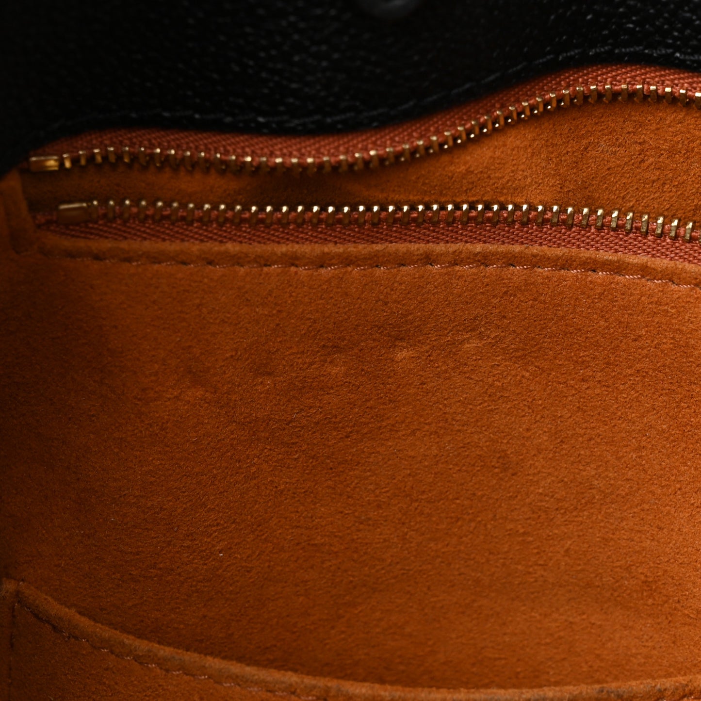 This is an authentic LOUIS VUITTON Empreinte Monogram Giant Onthego GM in Black. This limited edition tote is crafted of oversized and classic Louis Vuitton monogram embossed Empreinte leather in black. The bag features black leather top handles and long strap handles with brass hardware. The top is open to a spacious orange microfiber interior with zipper and patch pockets.Follow this item for alerts. Louis Vuitton is a registered trademark of Louis Vuitton. FASHIONPHILE is not affiliated with Louis Vuitton.