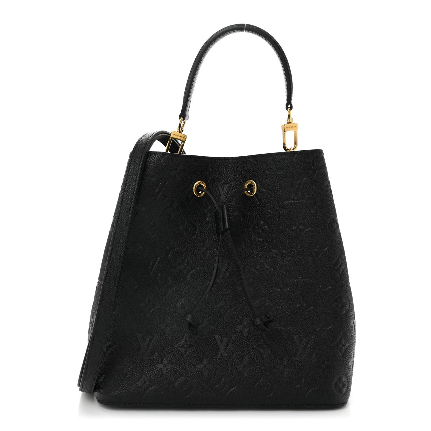 This is an authentic LOUIS VUITTON Empreinte Neonoe MM in Black. This classic bucket style shoulder bag is crafted of black leather with the Louis Vuitton monogram. The bag features a removable black shoulder strap, an optional top handle strap, a cinch chord, and polished brass hardware. This opens to a black microfiber interior with a central zipper compartment.Follow this item for alerts. Louis Vuitton is a registered trademark of Louis Vuitton. FASHIONPHILE is not affiliated with Louis Vuitton.