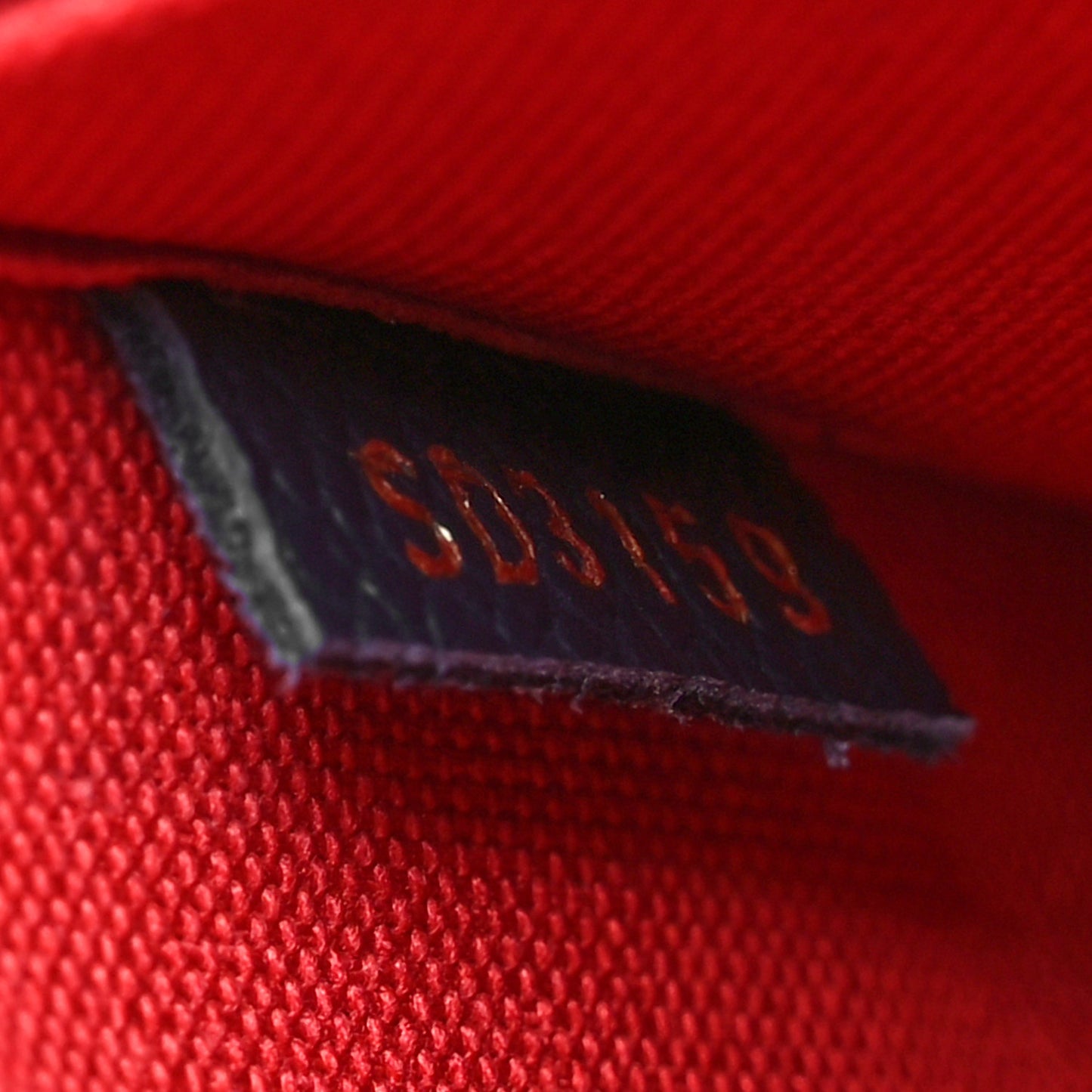 This is an authentic LOUIS VUITTON Empreinte Pochette Felicie Chain Wallet in Marine and Rouge. This stylish wallet is crafted of Louis Vuitton monogrammed empreinte leather in navy blue with decorative red edges. The bag features a polished brass chain link shoulder strap, and an envelope-style crossover flap. This snaps open to a red fabric interior with a patch pocket and two inserts.Follow this item for alerts. Louis Vuitton is a registered trademark of Louis Vuitton. FASHIONPHILE is not affiliated with Louis Vuitton.