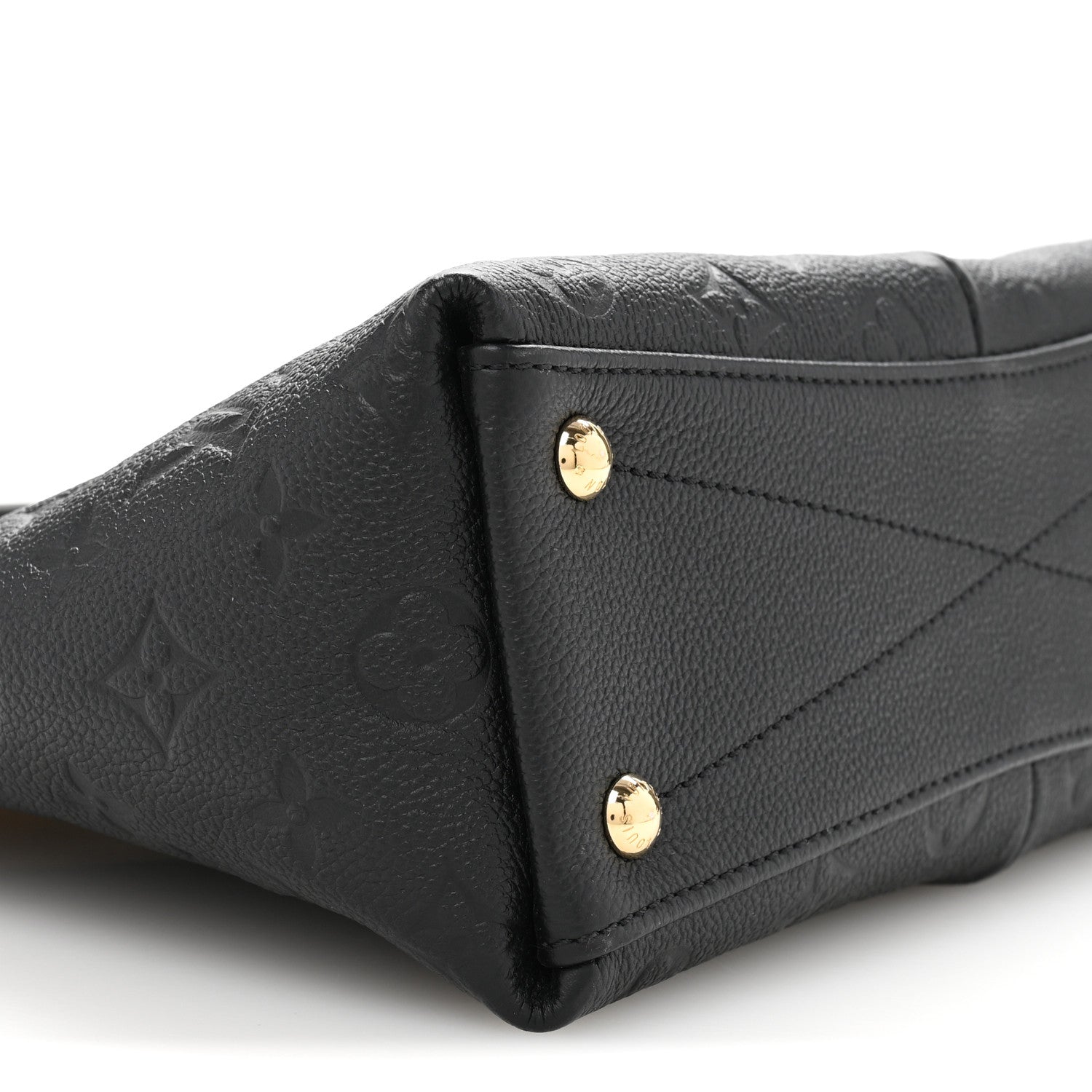 This is an authentic LOUIS VUITTON Empreinte V Tote BB in Black and Creme. This shoulder bag is crafted of soft calfskin leather with embossed Louis Vuitton monogram in black with beige leather accents on the front and back. The bag features black rolled leather handles, an optional shoulder strap with gold hardware, and a top zipper that opens to a black microfiber interior with patch pockets.Follow this item for alerts. Louis Vuitton is a registered trademark of Louis Vuitton. FASHIONPHILE is not affiliated with Louis Vuitton.