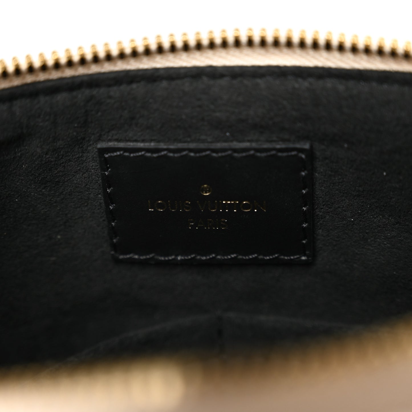 This is an authentic LOUIS VUITTON Empreinte V Tote BB in Black and Creme. This shoulder bag is crafted of soft calfskin leather with embossed Louis Vuitton monogram in black with beige leather accents on the front and back. The bag features black rolled leather handles, an optional shoulder strap with gold hardware, and a top zipper that opens to a black microfiber interior with patch pockets.Follow this item for alerts. Louis Vuitton is a registered trademark of Louis Vuitton. FASHIONPHILE is not affiliated with Louis Vuitton.
