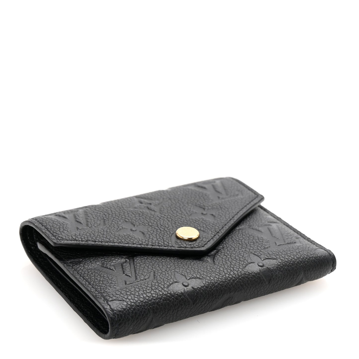 This is an authentic LOUIS VUITTON Empreinte Victorine Wallet in Black. This stylish wallet is crafted of Louis Vuitton monogram-embossed calfskin leather in black. This wallet opens with a polished brass snap to a matching black leather interior with card slots, patch pockets, a billfold, and a zipper compartment.Follow this item for alerts. Louis Vuitton is a registered trademark of Louis Vuitton. FASHIONPHILE is not affiliated with Louis Vuitton.