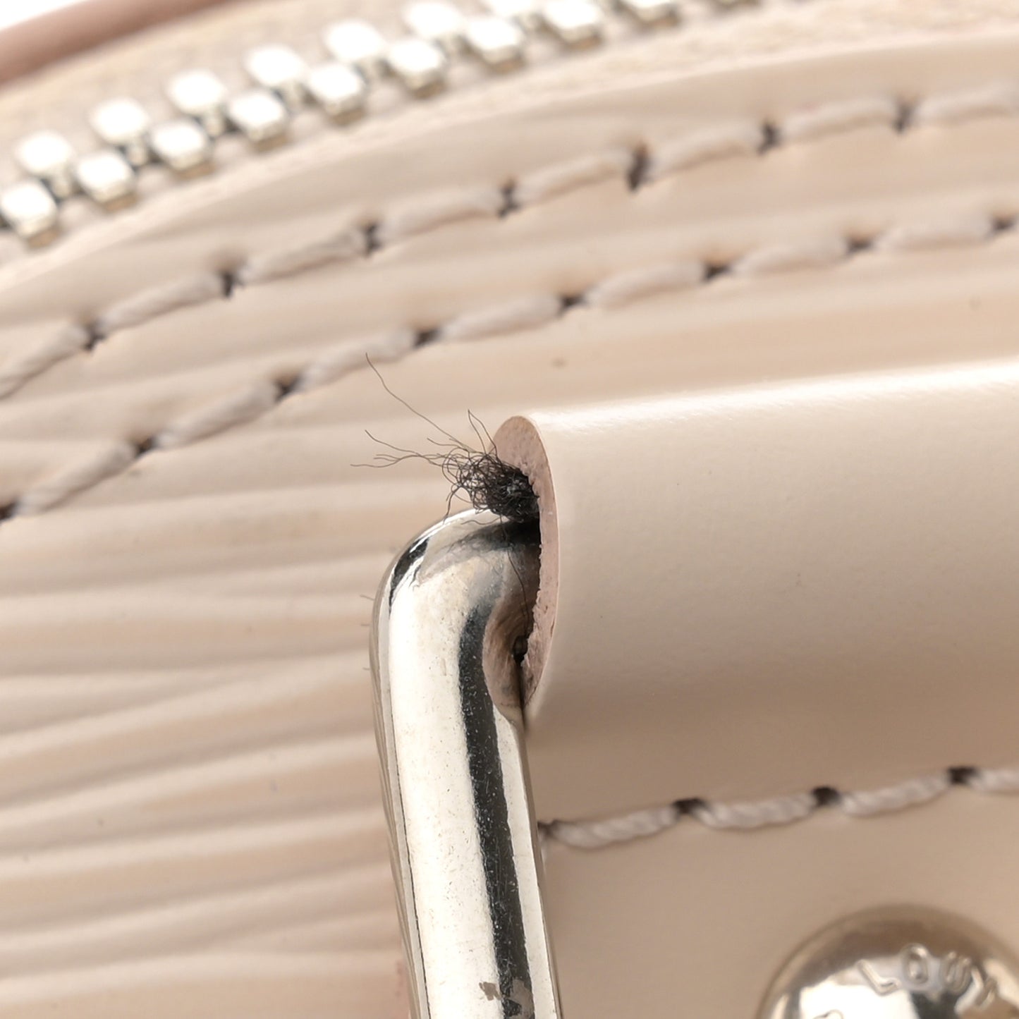 This is an authentic LOUIS VUITTON Epi Jacquard Alma BB in Quartz. This stylish handbag is crafted of Louis Vuitton's signature textured epi leather in beige. This classic mini handbag features rolled leather top handles and polished silver hardware. The zippered top opens to a beige microfiber interior with a pocket.Follow this item for alerts. Louis Vuitton is a registered trademark of Louis Vuitton. FASHIONPHILE is not affiliated with Louis Vuitton.