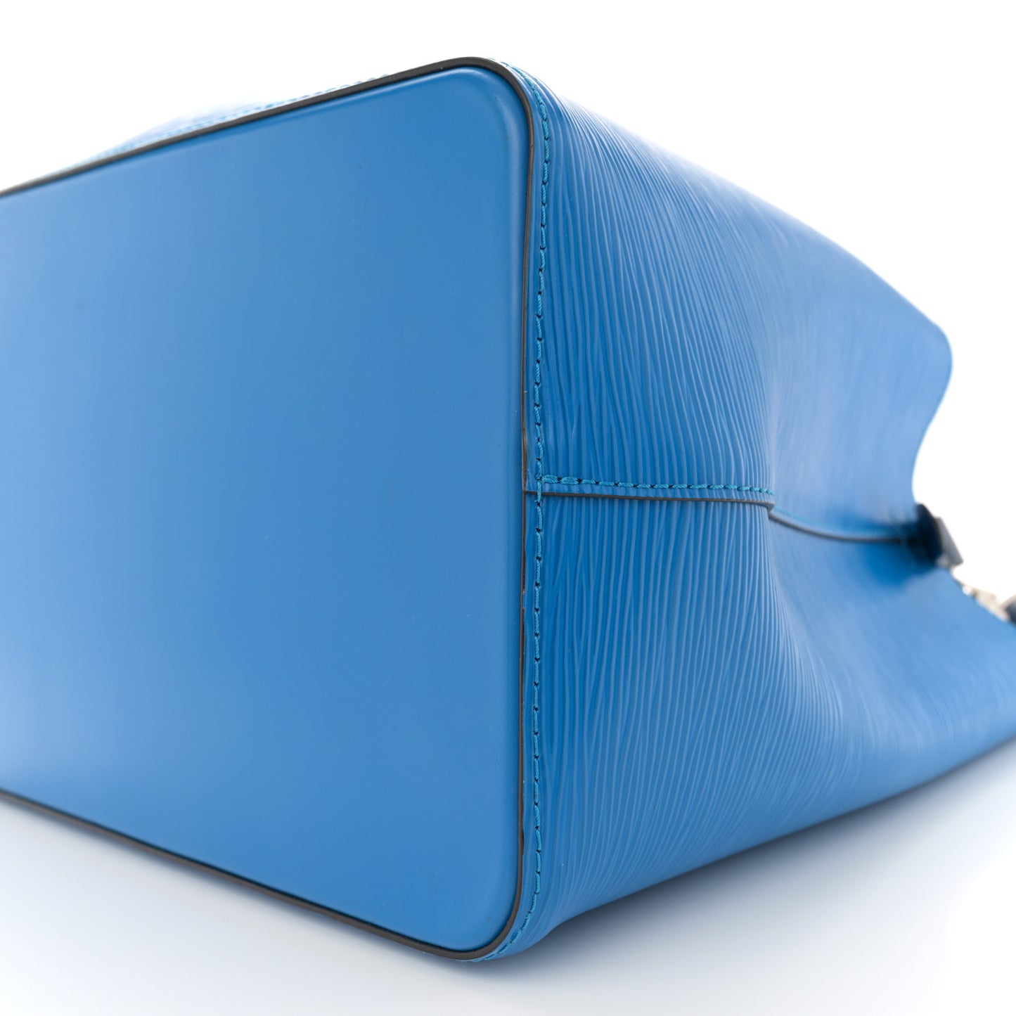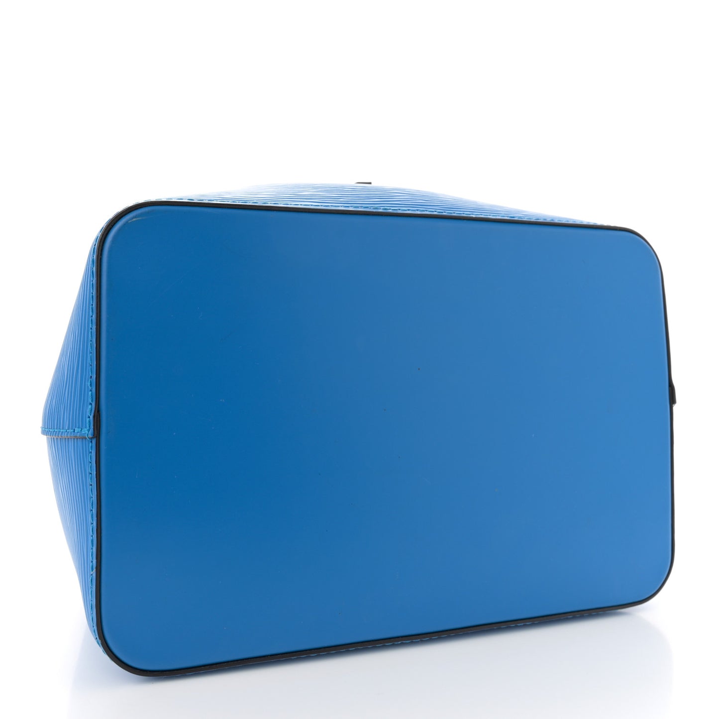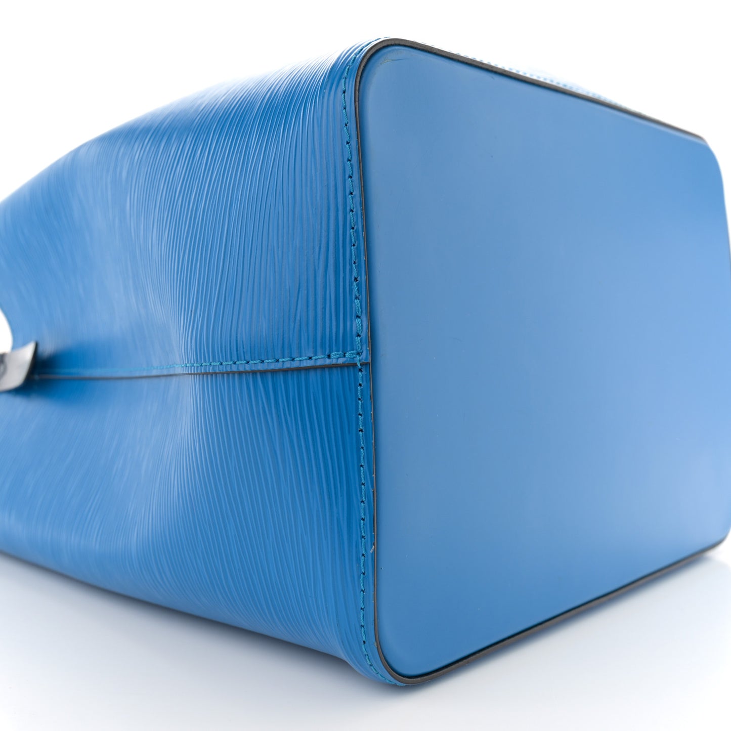 This is an authentic LOUIS VUITTON Epi NeoNoe MM in Lazuli and Navy. This classic bucket style shoulder bag is crafted of Louis Vuitton epi leather in blue. The bag features an optional blue shoulder strap, a top handle, top cinch cord, and polished silver hardware. This opens to a blue microfiber interior and a center zip pocket to keep you organized.Follow this item for alerts. Louis Vuitton is a registered trademark of Louis Vuitton. FASHIONPHILE is not affiliated with Louis Vuitton.