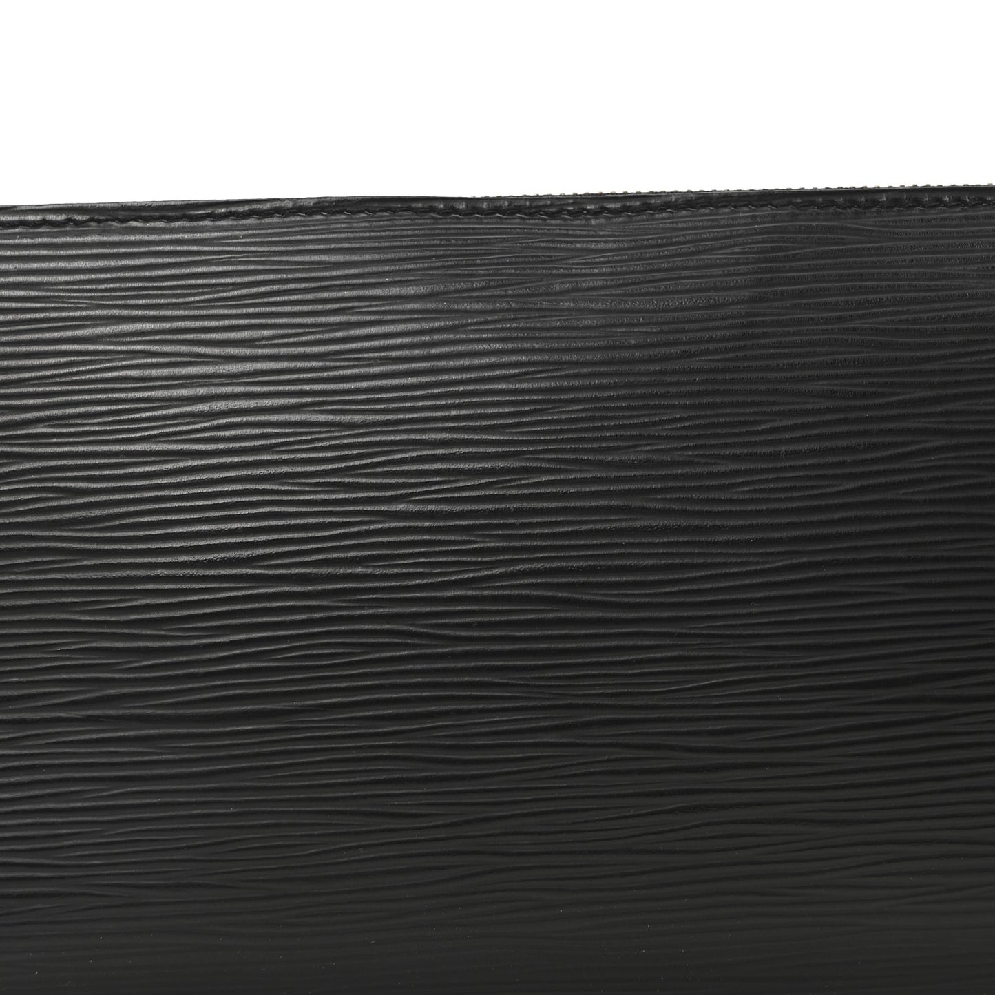 This is an authentic LOUIS VUITTON Epi Pochette Accessories 24 in Black. This stylish pochette is finely crafted of Louis Vuitton's signature textured epi leather in black. The bag features a black leather strap and gold hardware. The top zipper opens to a grey microfiber interior.Follow this item for alerts. Louis Vuitton is a registered trademark of Louis Vuitton. FASHIONPHILE is not affiliated with Louis Vuitton.