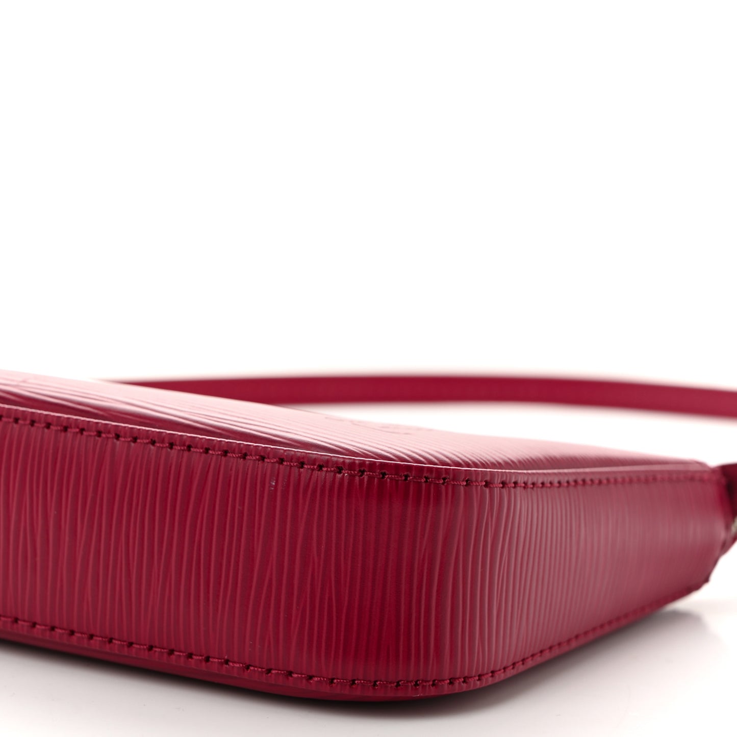 This is an authentic LOUIS VUITTON Epi Pochette Accessories NM in Fuchsia. This stylish small pochette is composed of Louis Vuitton signature epi textured leather in dark pink. The bag features a leather wrist strap with a detachable D-ring end that will secure your handbag. The top polished silver zipper opens to a matching microfiber interior with a flat pocket.Follow this item for alerts. Louis Vuitton is a registered trademark of Louis Vuitton. FASHIONPHILE is not affiliated with Louis Vuitton.
