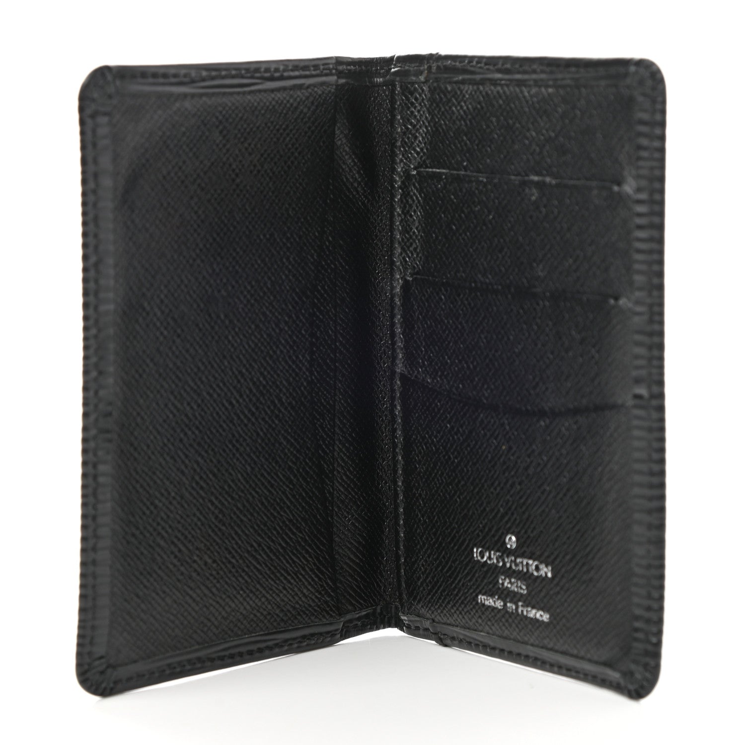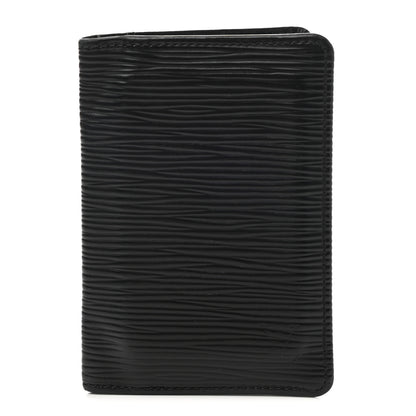 This is an authentic LOUIS VUITTON Epi Pocket Organizer in Black. This stylish card case is crafted of Louis Vuitton signature textured epi leather in black. The case opens in a folder style to a cross-grain leather interior with patch pockets and card slots.Follow this item for alerts. Louis Vuitton is a registered trademark of Louis Vuitton. FASHIONPHILE is not affiliated with Louis Vuitton.