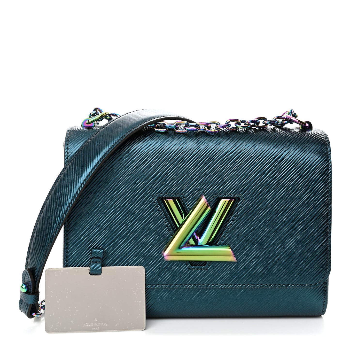 This is an authentic LOUIS VUITTON Epi Twist Scarabeo Shoulder Bag MM in Blue Boreale. This stylish shoulder bag is crafted of epi leather in blue boreale. The bag features an iridescent chain with a leather shoulder pad and bold shiny multicolor LV turn lock on the facing flap. This opens into a black microfiber interior with two small patch pockets.Follow this item for alerts. Louis Vuitton is a registered trademark of Louis Vuitton. FASHIONPHILE is not affiliated with Louis Vuitton.