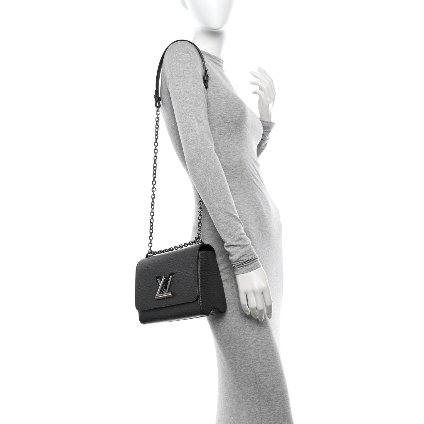 This is an authentic LOUIS VUITTON Epi Twist Shoulder Bag MM in Etain. This stylish waist length cross body shoulder bag is crafted of textured epi leather in dark grey. The chic bag features a polished silver chain shoulder strap with a leather shoulder pad and a polished silver LV twist lock on the facing flap. This opens to a matching microfiber interior with a small patch pocket and a compartment slot for the removable mirror.Follow this item for alerts. Louis Vuitton is a registered trademark of Louis Vuitton. FASHIONPHILE is not affiliated with Louis Vuitton.