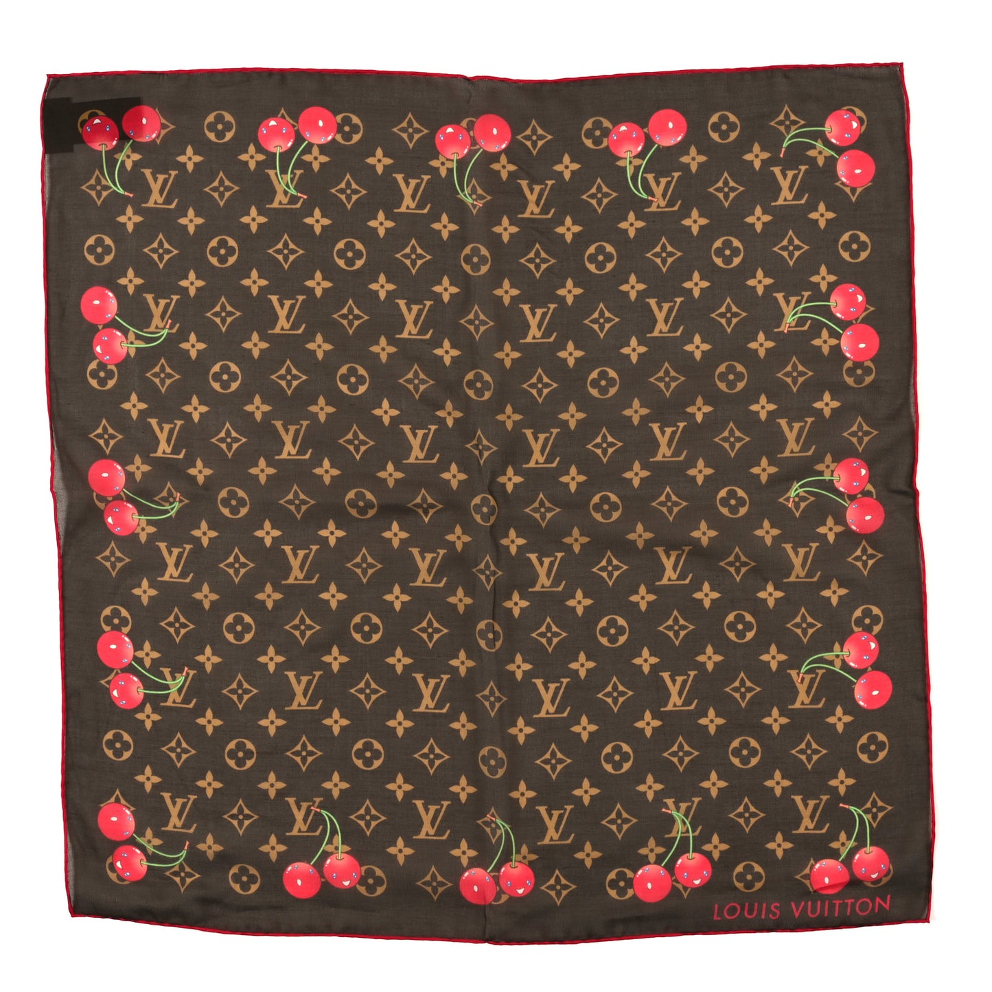 Louis Vuitton/ Accessories/ Scarves /Louis Vuitton LV X TM Silk Cotton Monogram Cerises Square Scarf 55 Brown
