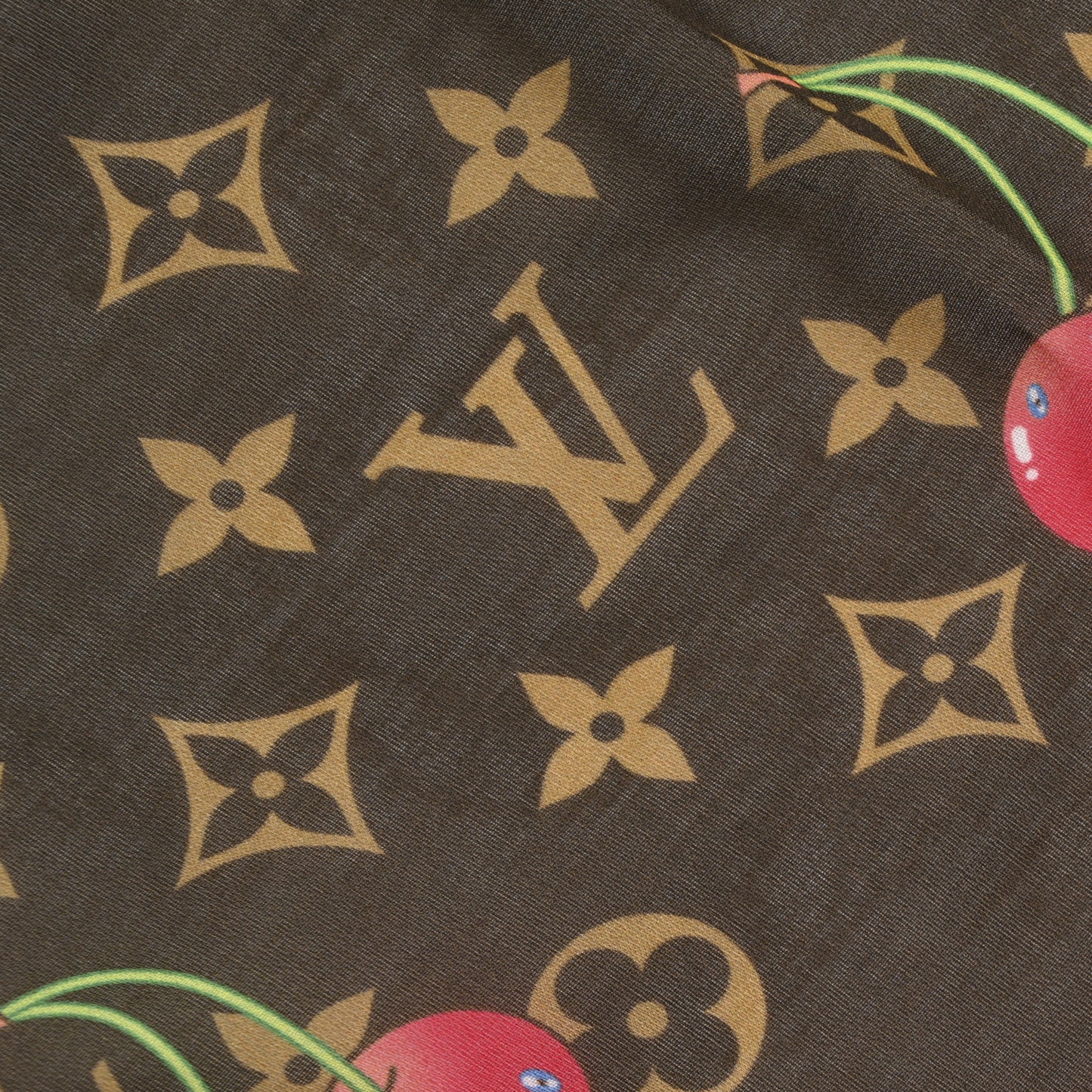 This is an authentic LOUIS VUITTON LV X TM Silk Cotton Monogram Cerises Square Scarf 55 in Brown. This stylish scarf is 55% silk and 45% cotton and features the Louis Vuitton monogram with a red trim border and iconic LV cerises.Follow this item for alerts. Louis Vuitton is a registered trademark of Louis Vuitton. FASHIONPHILE is not affiliated with Louis Vuitton.