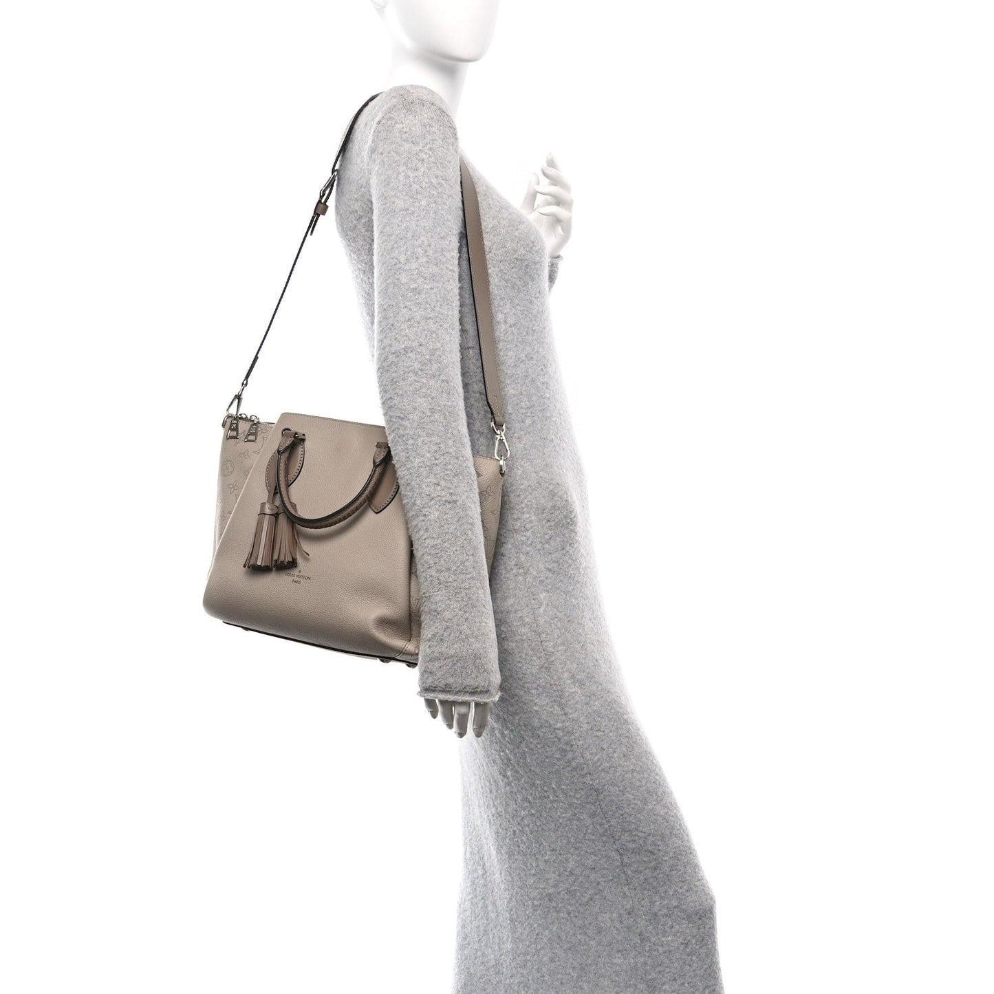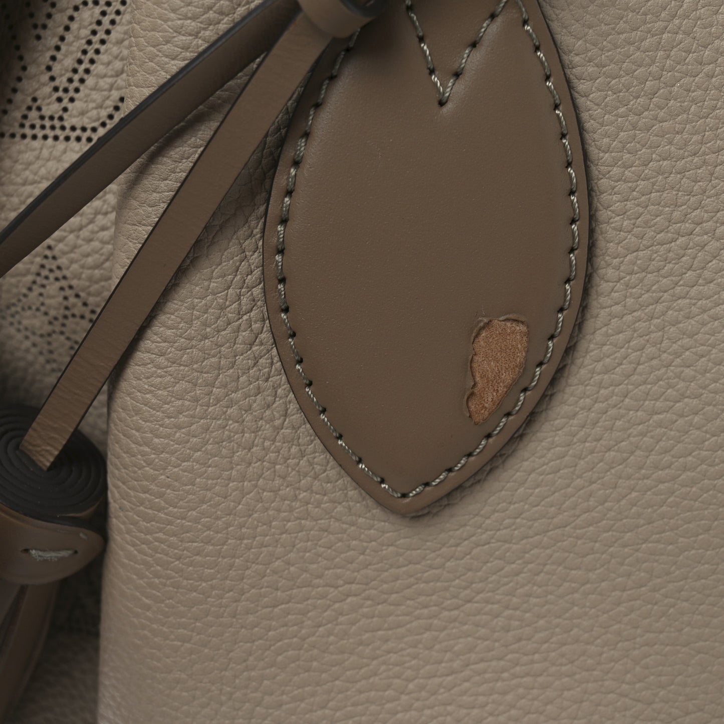 This is an authentic LOUIS VUITTON Mahina Haumea in Galet. This chic handbag is crafted of grained calfskin leather in beige. This shoulder bag features braided rolled beige leather top handles, an optional leather shoulder strap, and silver hardware. This opens to a brown suede interior with patch pockets.Follow this item for alerts. Louis Vuitton is a registered trademark of Louis Vuitton. FASHIONPHILE is not affiliated with Louis Vuitton.