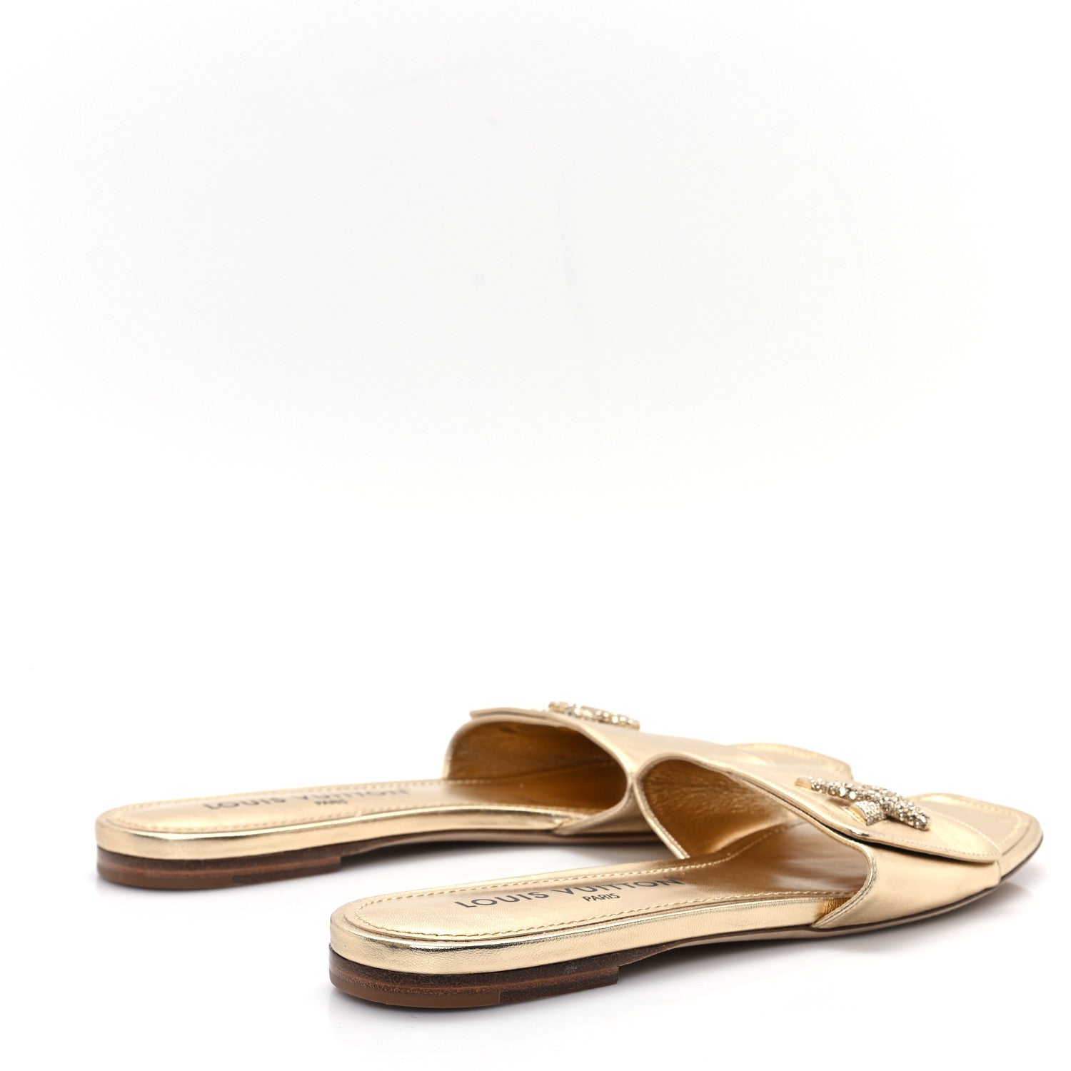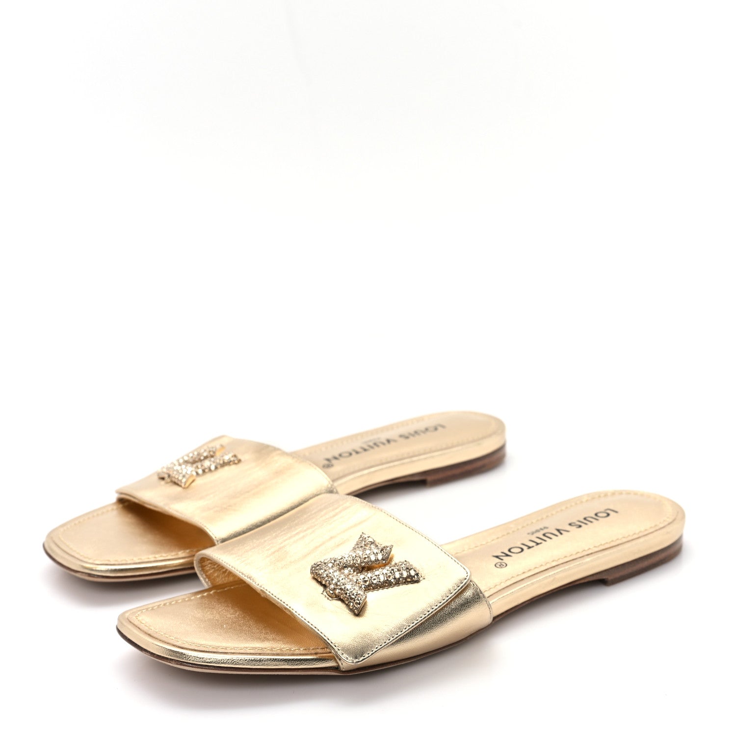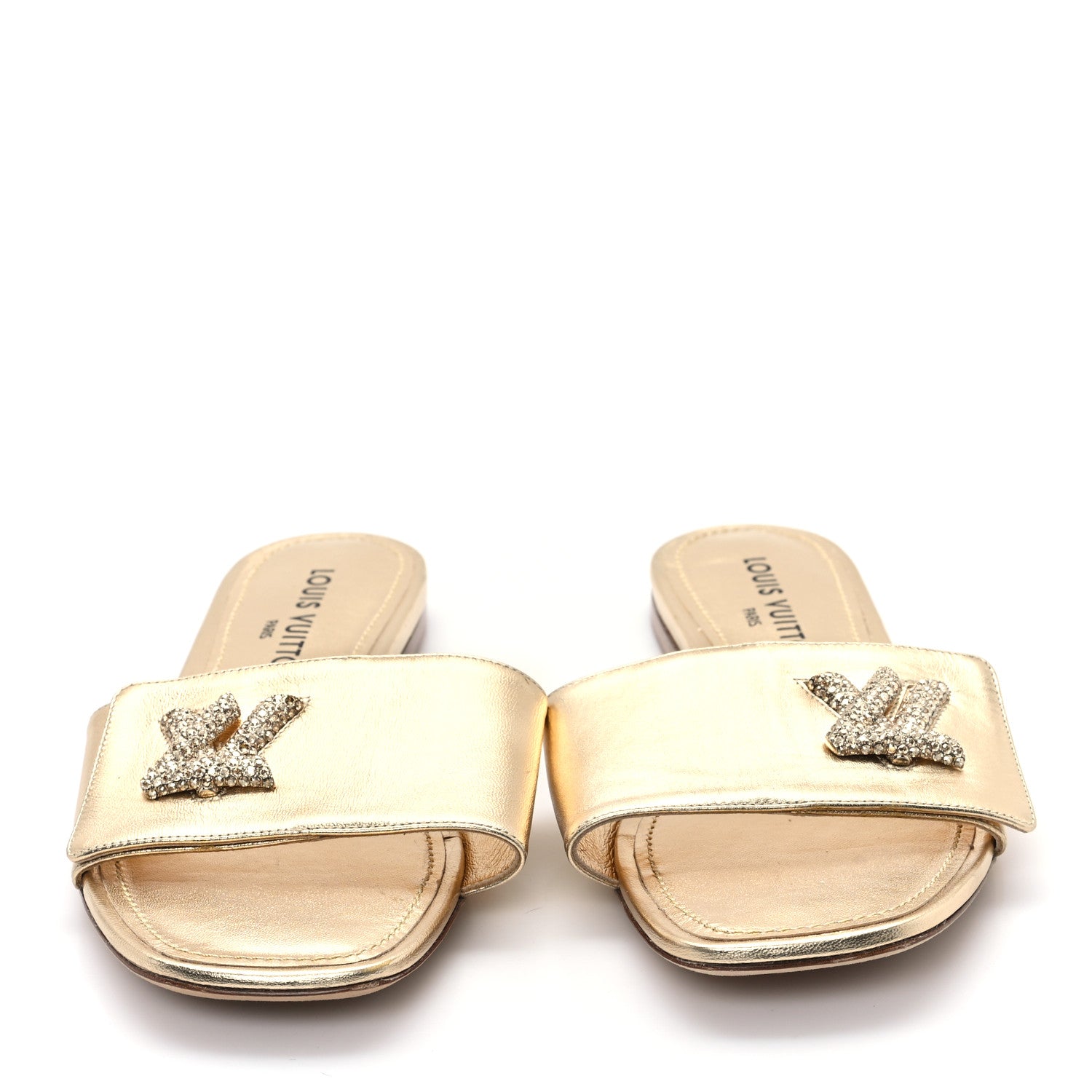 Louis Vuitton/ Accessories/ Shoes /Louis Vuitton Metallic Calfskin Shake Flat Sandal 40 Gold