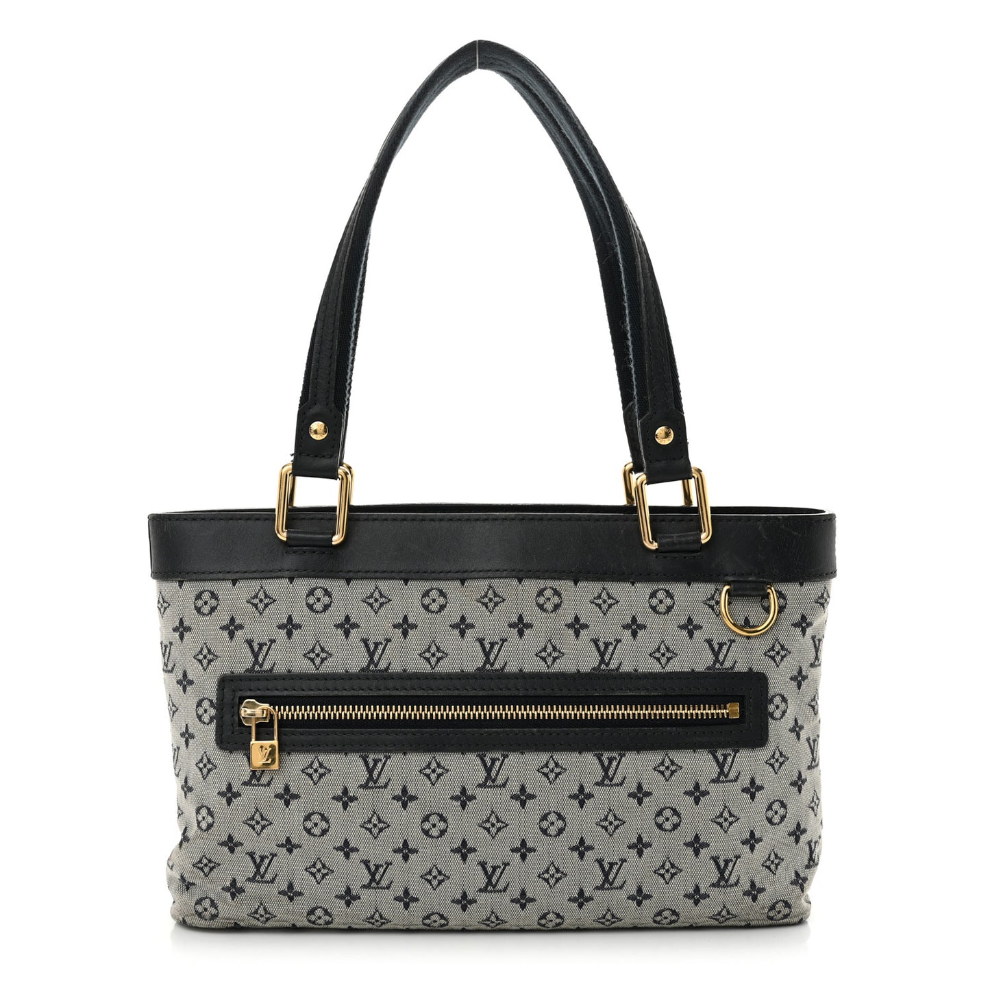 This is an authentic LOUIS VUITTON Mini Monogram Lucille PM in Blue. This stylish tote is finely crafted of blue Louis Vuitton mini monogram canvas. The bag features blue leather and canvas strap handles, leather trim, a front zipper pocket and polished brass hardware. The top zipper opens to a grey fabric interior with patch pockets.Follow this item for alerts. Louis Vuitton is a registered trademark of Louis Vuitton. FASHIONPHILE is not affiliated with Louis Vuitton.