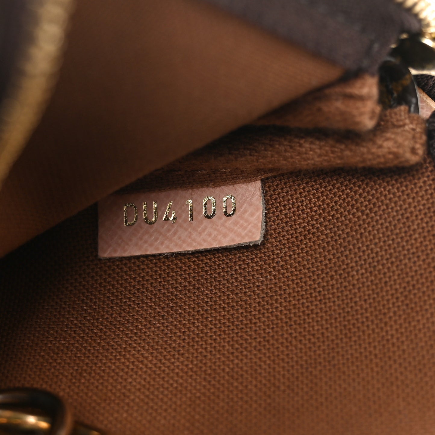 This is an authentic LOUIS VUITTON Monogram Affiche Mini Pochette Accessories. This stylish pochette is crafted of traditional Louis Vuitton monogram toile canvas with a pink Louis Vuitton handbag print overlay. This pochette features polished brass hardware and opens to a cocoa brown fabric interior.Follow this item for alerts. Louis Vuitton is a registered trademark of Louis Vuitton. FASHIONPHILE is not affiliated with Louis Vuitton.