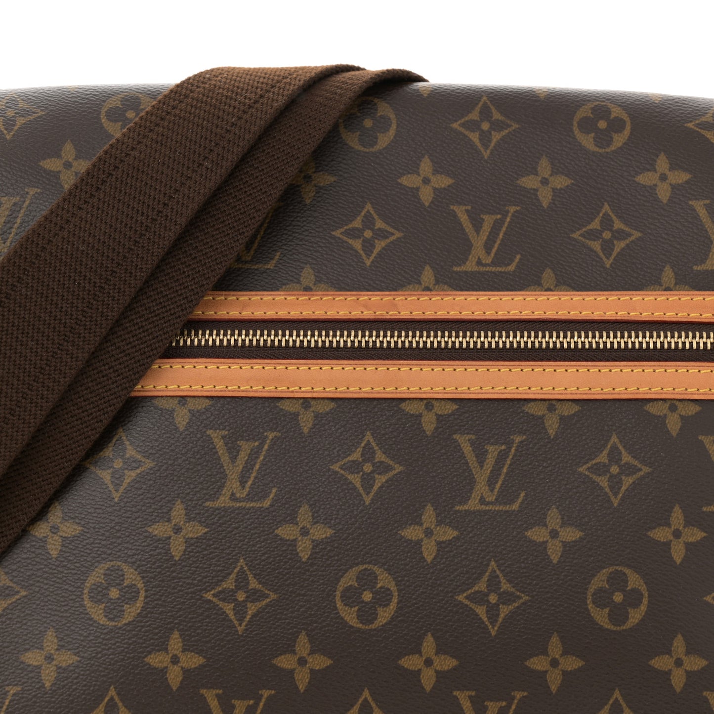 This is an authentic LOUIS VUITTON Monogram Bosphore GM. This stylish messenger bag is created of classic Louis Vuitton monogram coated canvas. The bag features a nylon body strap with vachetta cowhide leather trim, polished brass hardware, a wide rear flat pocket and a front zipper pocket on the front flap. The top zipper opens to flap pockets and a cocoa colored fabric interior with patch pockets.Follow this item for alerts. Louis Vuitton is a registered trademark of Louis Vuitton. FASHIONPHILE is not affiliated with Louis Vuitton.
