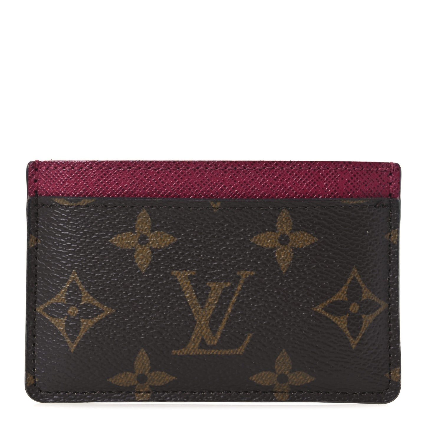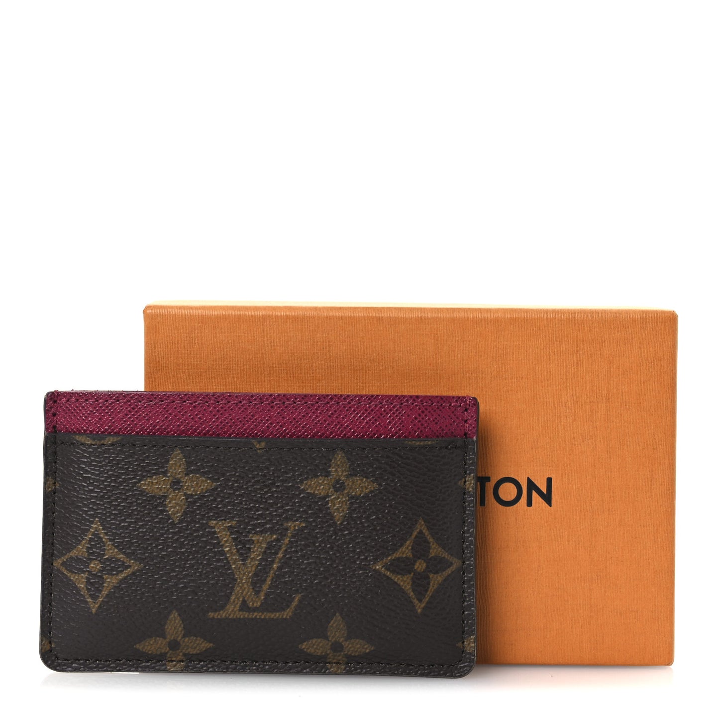 This is an authentic LOUIS VUITTON Monogram Card Holder in Fuchsia. This stylish cardholder is crafted of classic Louis Vuitton monogram on toile canvas and dark pink cross-grain leather and features two card slots on either side of the center card slot.Follow this item for alerts. Louis Vuitton is a registered trademark of Louis Vuitton. FASHIONPHILE is not affiliated with Louis Vuitton.
