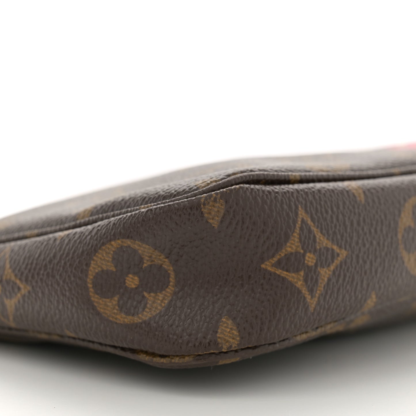 This is an authentic LOUIS VUITTON Monogram Cerises Pochette Accessories. This is a fabulous mini clutch from Louis Vuitton that is expertly crafted of classic Louis Vuitton monogram on toile canvas. The bag features brass hardware, and a frontal decorative print of cherries with smiling faces. The top zipper opens to a brown fabric interior.Follow this item for alerts. Louis Vuitton is a registered trademark of Louis Vuitton. FASHIONPHILE is not affiliated with Louis Vuitton.