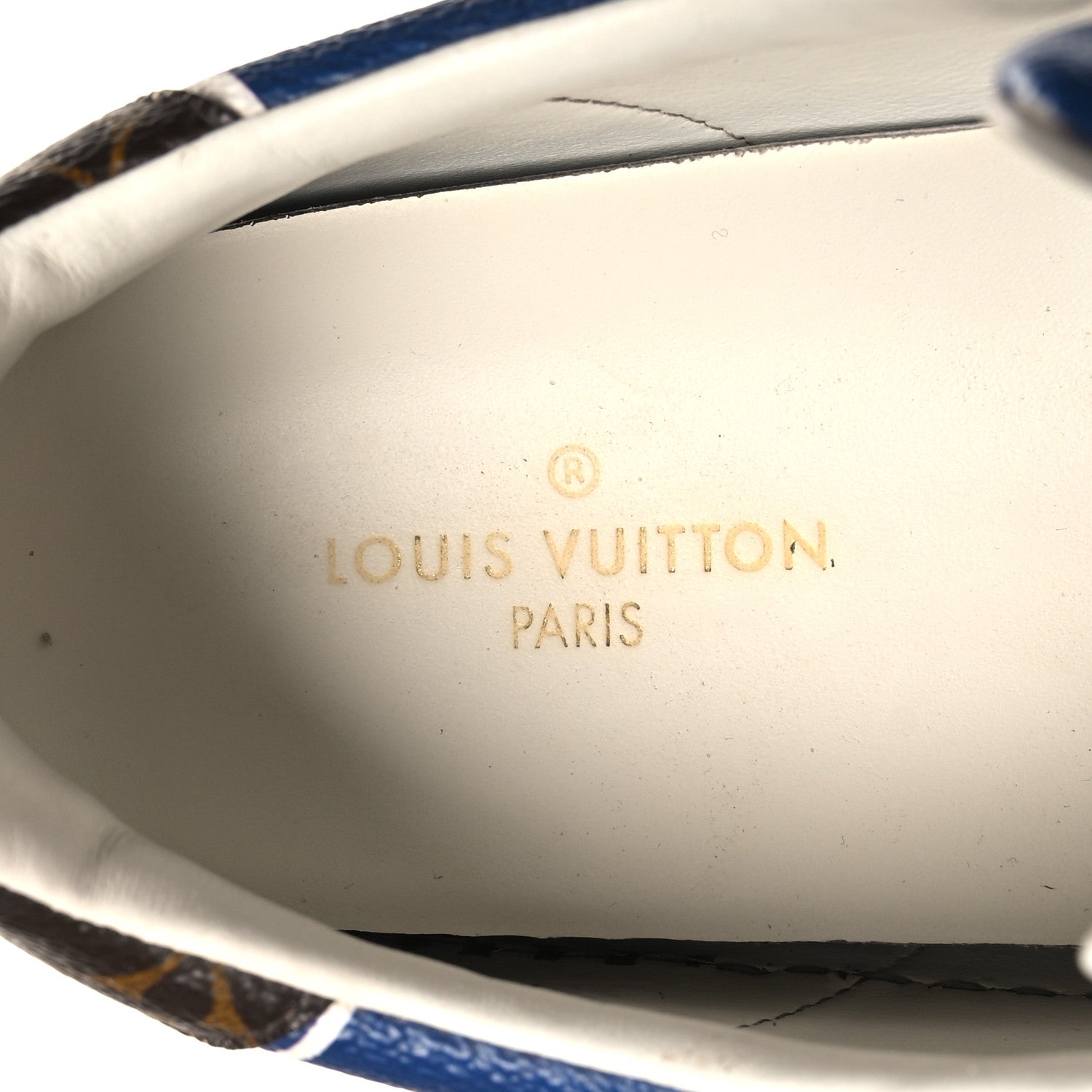 This is an authentic pair of LOUIS VUITTON Monogram Escale Time Out Sneakers size 38 in Blue. These stylish sneakers are crafted of white Louis Vuitton monogram on toile canvas in blue, white, and brown. They feature white sturdy rubber soles with Louis Vuitton monogram icons.Follow this item for alerts. Louis Vuitton is a registered trademark of Louis Vuitton. FASHIONPHILE is not affiliated with Louis Vuitton.