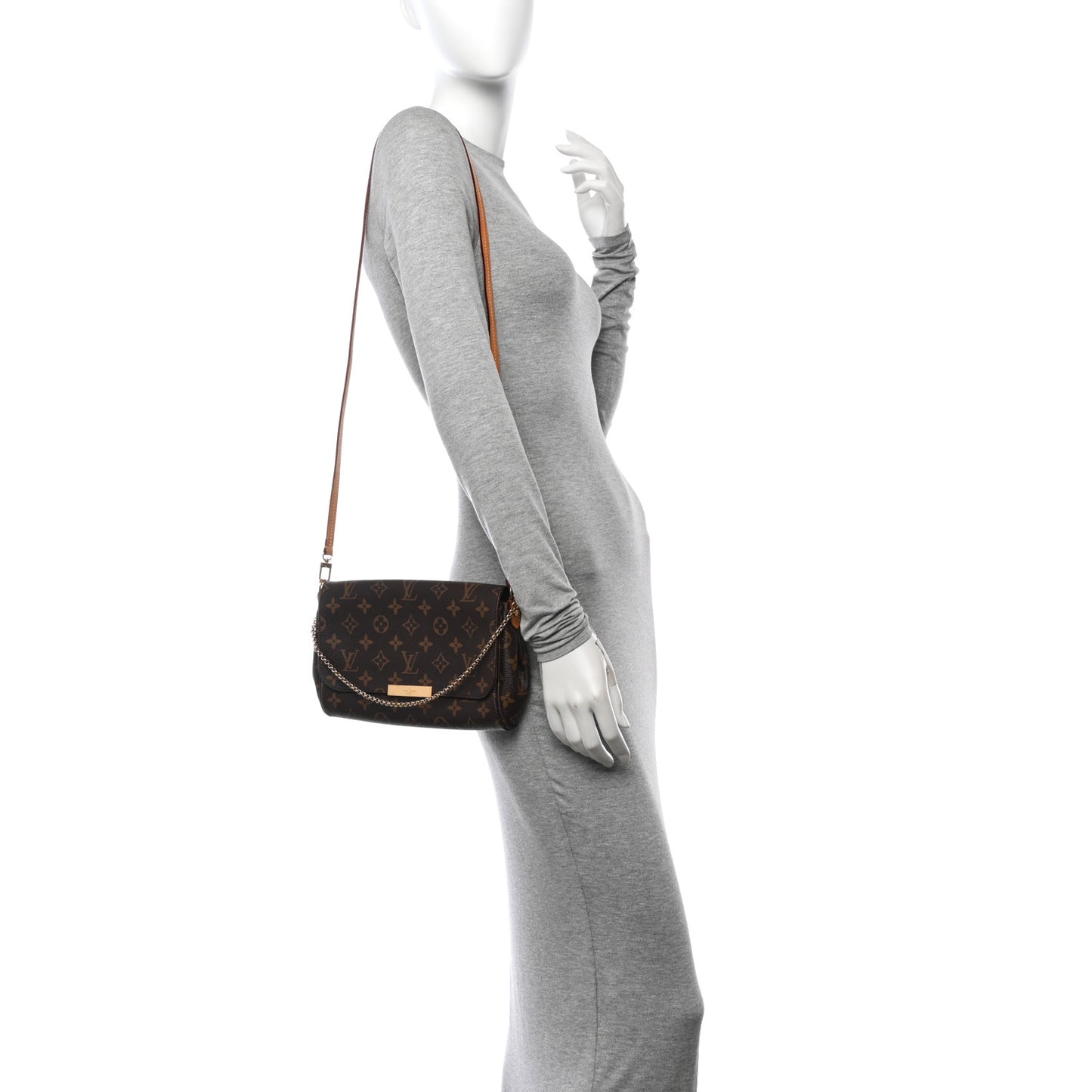 This is an authentic LOUIS VUITTON Monogram Favorite MM. This stylish shoulder bag is crafted of monogram coated canvas in brown. The bag features a polished gold chain strap, an optional vachetta shoulder strap, and polished gold hardware. The front flap opens with a magnetic gold bar to a burgundy fabric interior with a flat pocket.Follow this item for alerts. Louis Vuitton is a registered trademark of Louis Vuitton. FASHIONPHILE is not affiliated with Louis Vuitton.