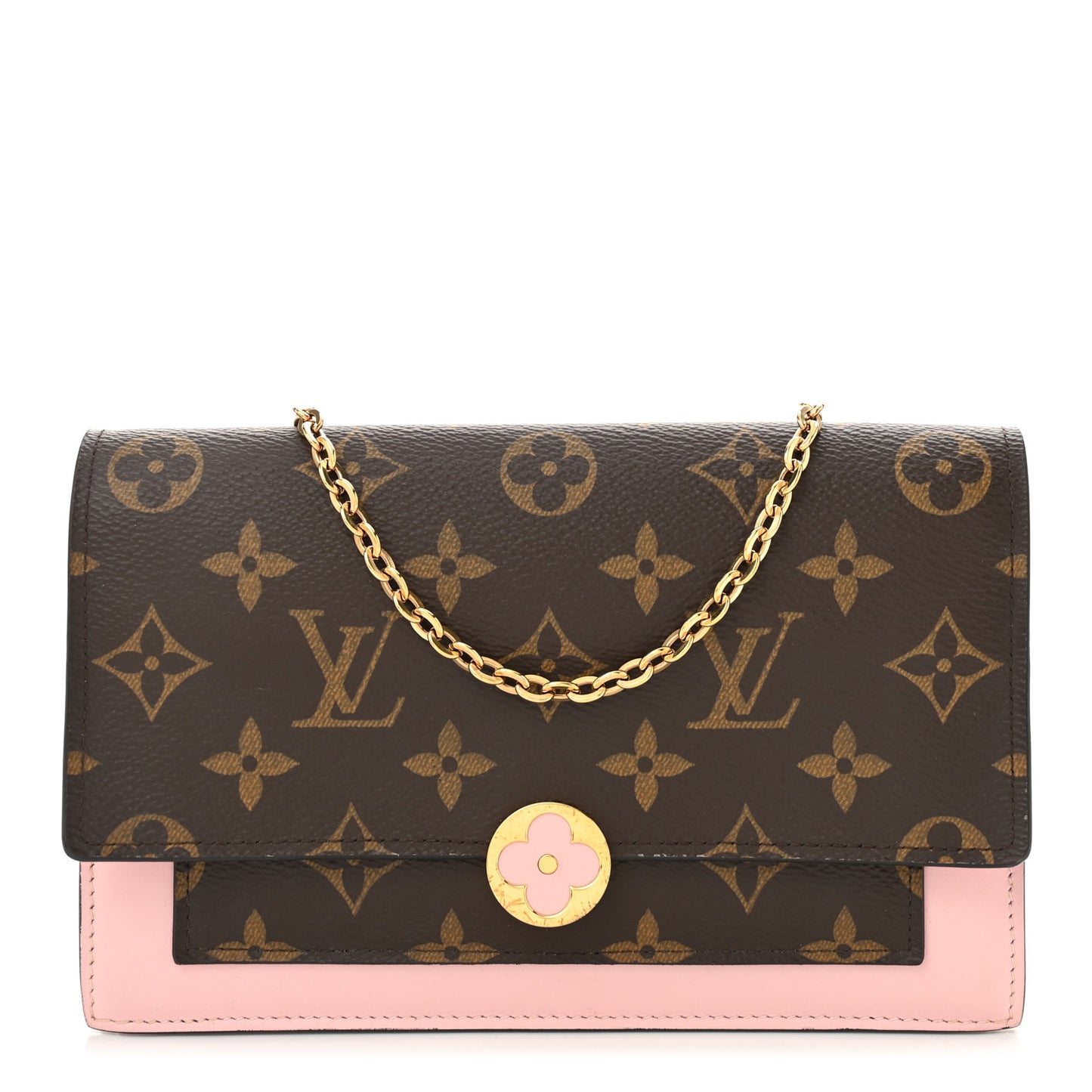 Monogram Flore Chain Wallet Rose Ballerine