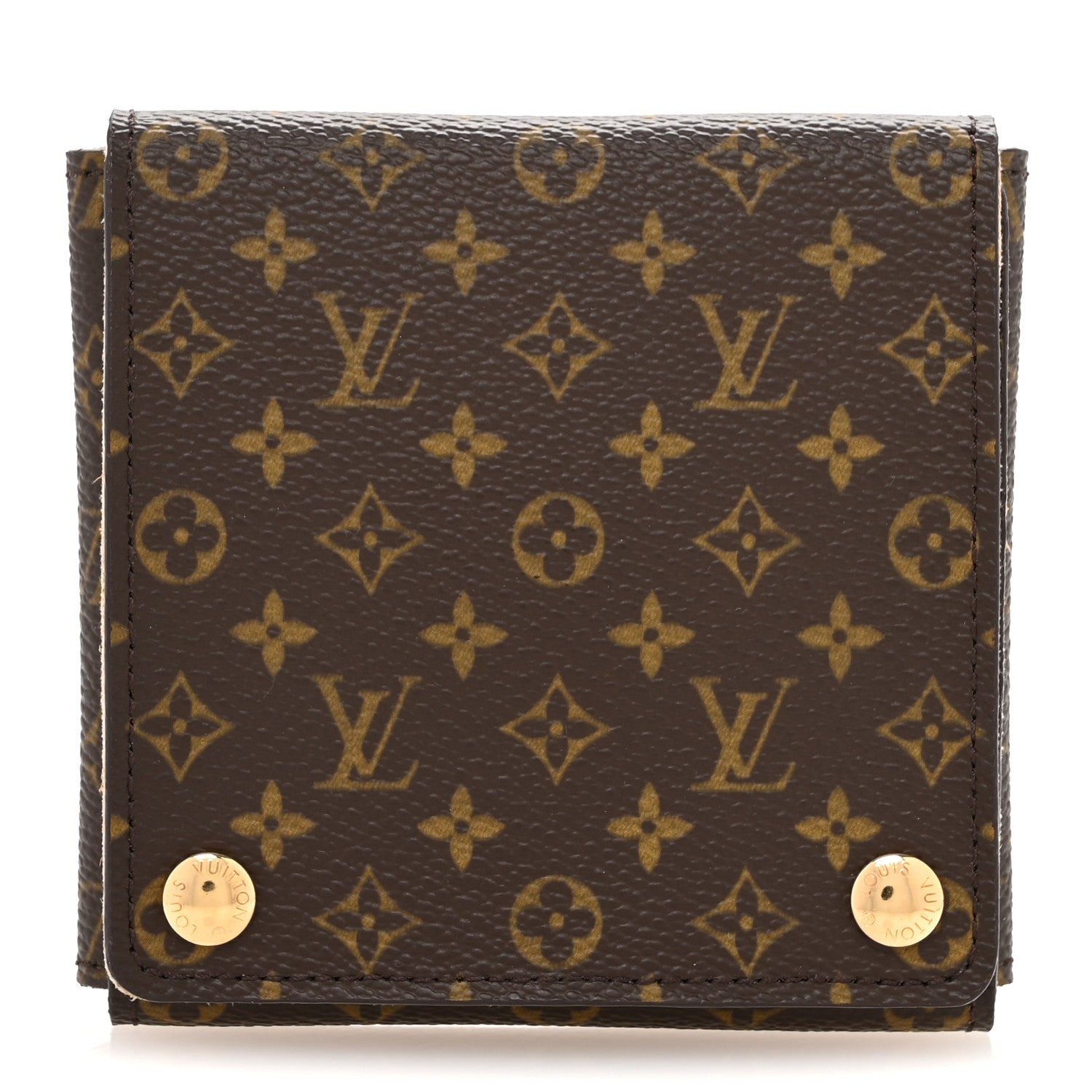 This is an authentic LOUIS VUITTON Monogram Folding Jewelry Case. This stylish case is crafted of monogram coated canvas and opens to a fold out interior of ivory colored microfiber.Follow this item for alerts. Louis Vuitton is a registered trademark of Louis Vuitton. FASHIONPHILE is not affiliated with Louis Vuitton.