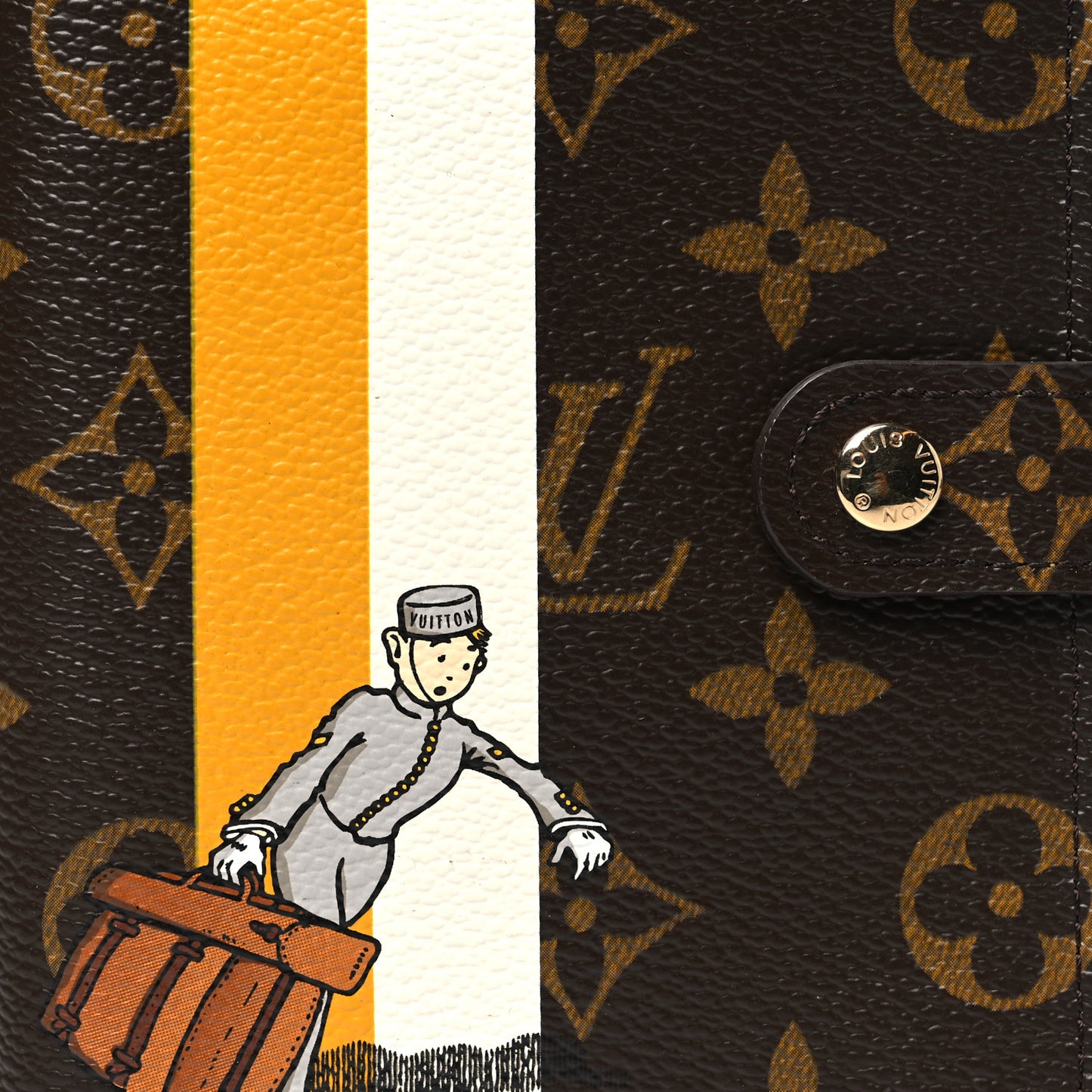 This is an authentic LOUIS VUITTON Monogram Groom Small Ring Agenda Cover in Yellow. This agenda is crafted of traditional monogram canvas and features a vintage illustration that was inspired by a 1921 advertisement for LV travel goods. It has a snap and flap closure. This agenda has a bold gold cross-grain leather lining with 3 credit card slots and 2 interior pockets to hold inserts.Follow this item for alerts. Louis Vuitton is a registered trademark of Louis Vuitton. FASHIONPHILE is not affiliated with Louis Vuitton.