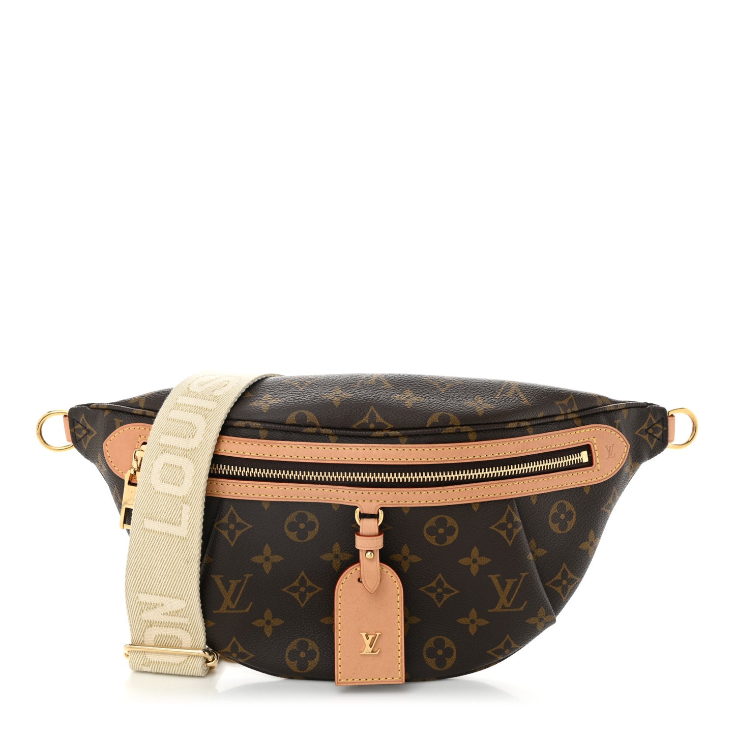 This is an authentic LOUIS VUITTON Monogram High Rise Bumbag. This stylish belt bag is crafted of traditional Louis Vuitton monogram on toile canvas with vachetta cowhide leather trim. The bag features a beige canvas adjustable waist strap, a rear zipper pocket and a vachetta leather bag charm on the front. The main zipper opens to a beige monogram jacquard interior.Follow this item for alerts. Louis Vuitton is a registered trademark of Louis Vuitton. FASHIONPHILE is not affiliated with Louis Vuitton.