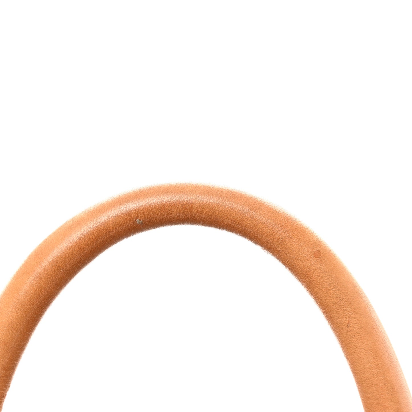 Handle: Scuffs, wear at resin glazing, patina of vachetta, liquid marks, cracks, missing additional strap