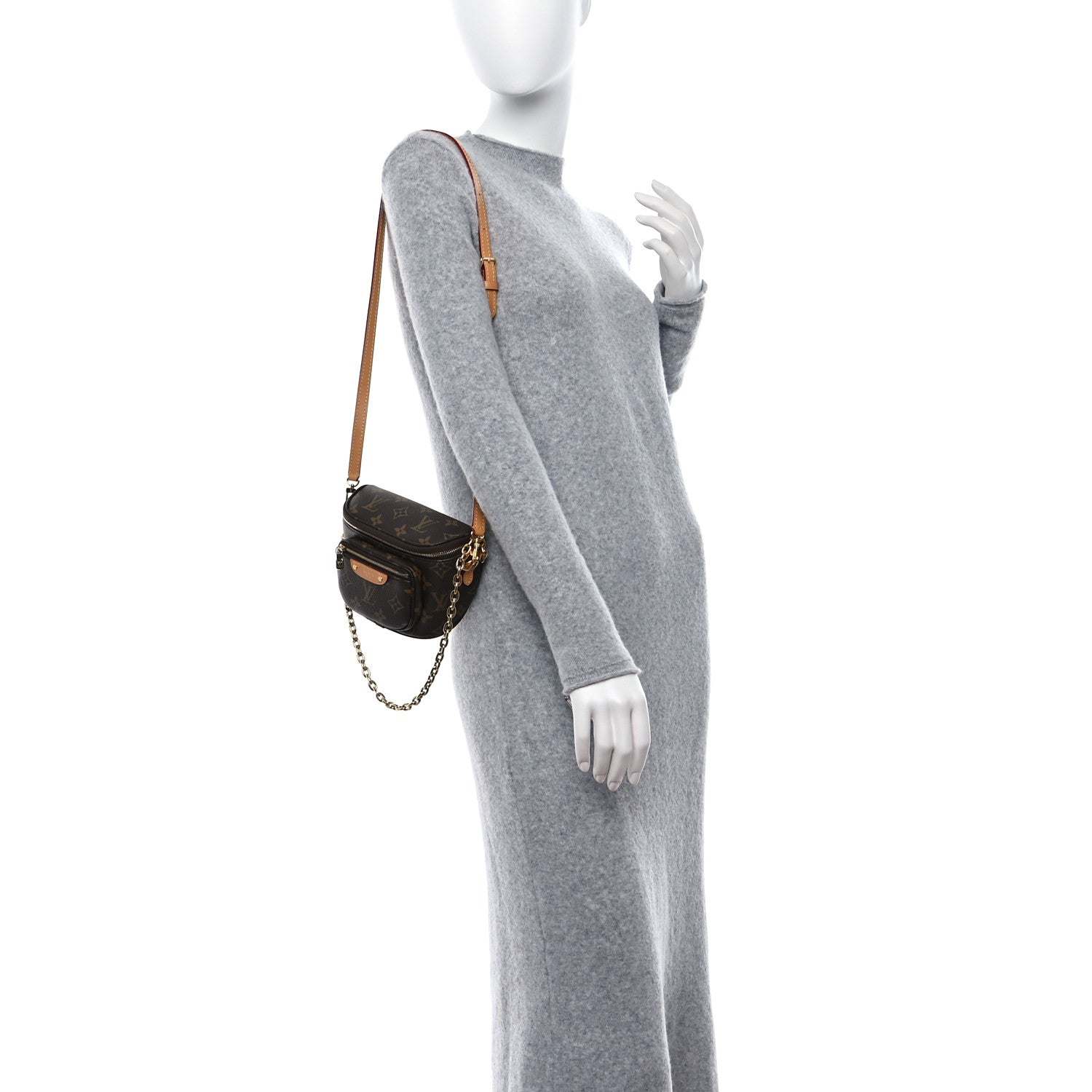 This is an authentic LOUIS VUITTON Monogram Mini Bumbag. This stylish belt bag is crafted of Louis Vuitton's traditional monogram coated canvas. The bag features a removable, adjustable vachetta cowhide leather strap as well as a removable gold chain strap. The bag has two compartments, a main zipper compartment that opens to a brown microfiber-lined interior, and a front zippered pocket.Follow this item for alerts. Louis Vuitton is a registered trademark of Louis Vuitton. FASHIONPHILE is not affiliated with Louis Vuitton.