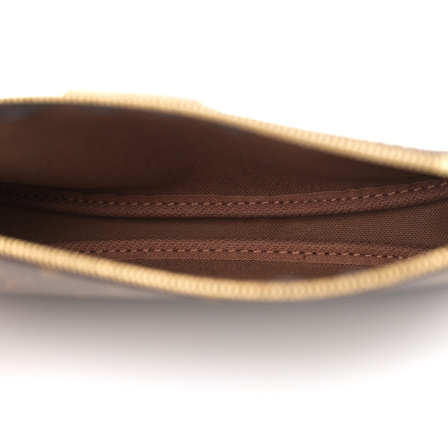 This is an authentic LOUIS VUITTON Monogram Multi Pochette Accessories in Rose Clair. This hybrid crossbody bag is crafted of monogram and mini monogram canvas in brown. The set features a pochette accessoires, a mini pochette, an adjustable pink jacquard shoulder strap with removable coin purse, and a chain strap for added versatility. The pochettes open to brown fabric interiors. The coin purse opens to an ivory crossgrain leather interior.Follow this item for alerts. Louis Vuitton is a registered trademark of Louis Vuitton. FASHIONPHILE is not affiliated with Louis Vuitton.