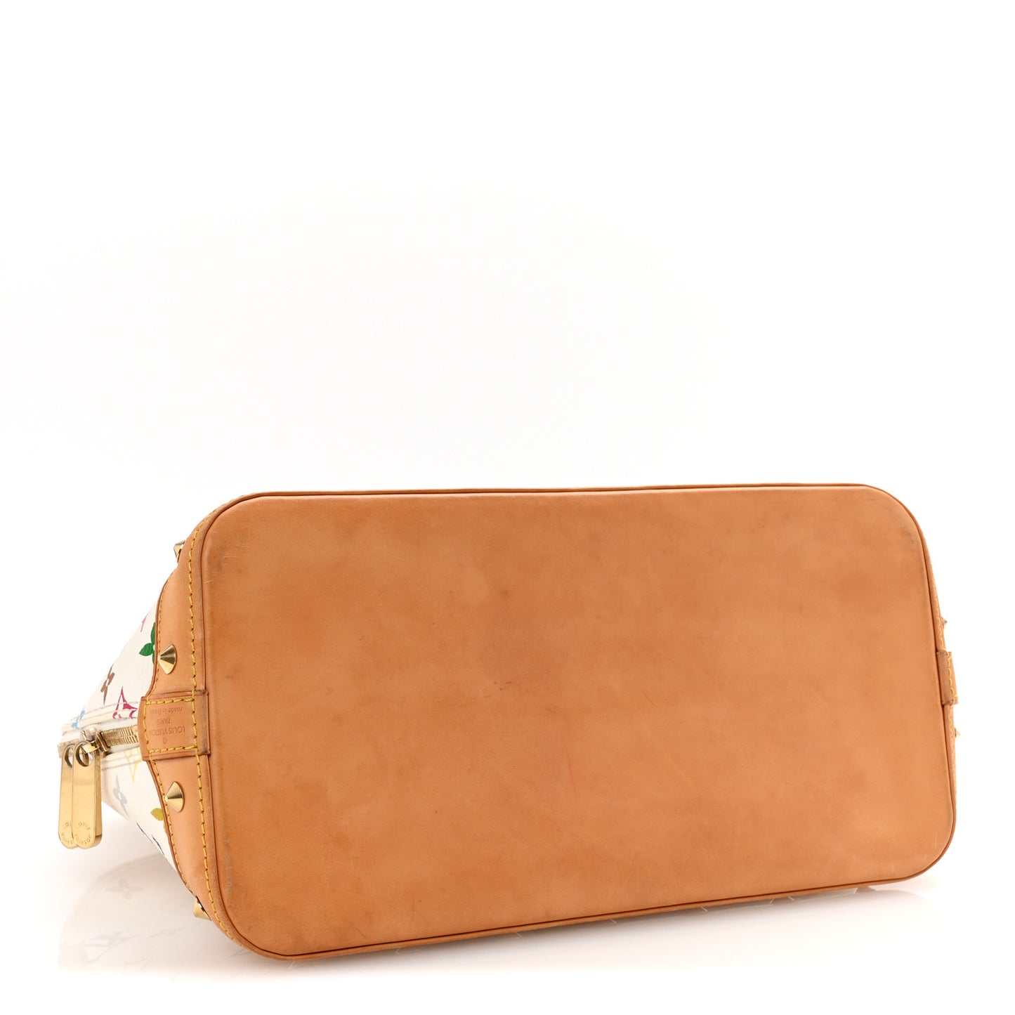 This is an authentic LOUIS VUITTON Monogram Multicolor Alma in White. This bowler-style tote is crafted of a multicolor monogram in 33 vivid colors on white toile canvas. It features vachetta leather top handles, a base, trim, and a front zipper pocket; all detailed with gold hardware. The double zipper opens to a raspberry red microfiber interior with patch pockets.Follow this item for alerts. Louis Vuitton is a registered trademark of Louis Vuitton. FASHIONPHILE is not affiliated with Louis Vuitton.