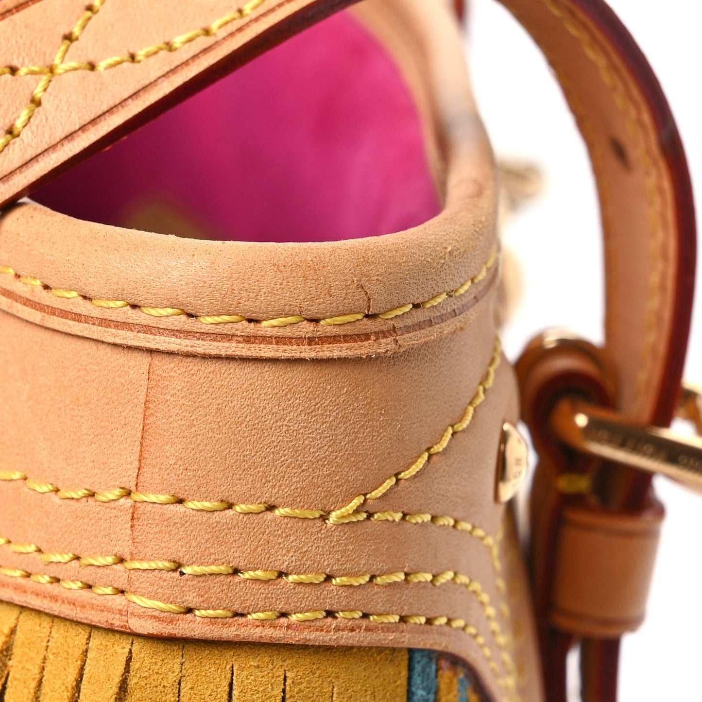 This is an authentic LOUIS VUITTON Monogram Multicolor Fringe Bucket in White. This colorful bucket bag is finely crafted of multicolor monogram toile canvas with leather fringe in various colors featuring charms and beads. The leather work has artistic stitching patterns with leather top handles and an open top that reveals a raspberry alcantara lining with a zip pocket and a flat pocket.Follow this item for alerts. Louis Vuitton is a registered trademark of Louis Vuitton. FASHIONPHILE is not affiliated with Louis Vuitton.