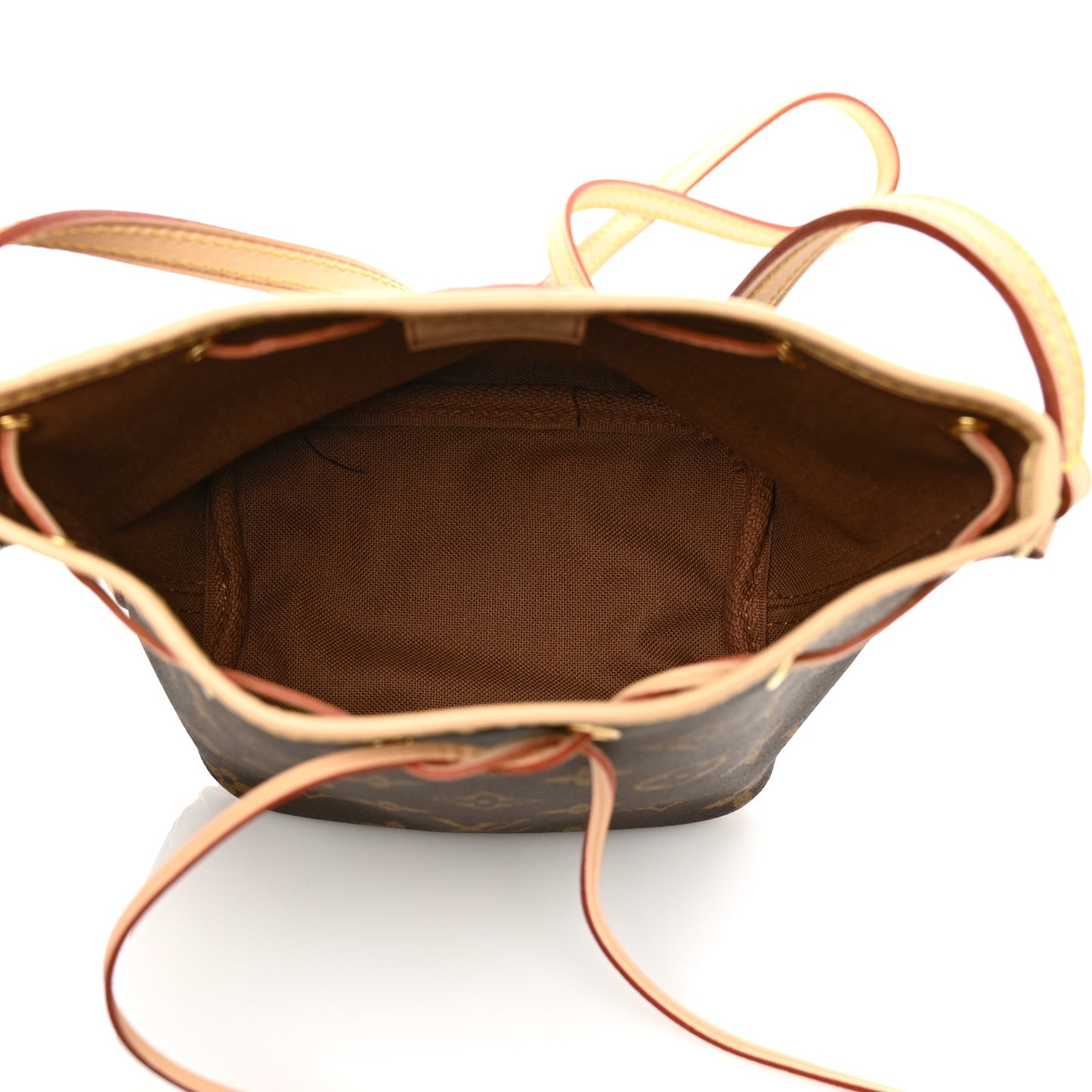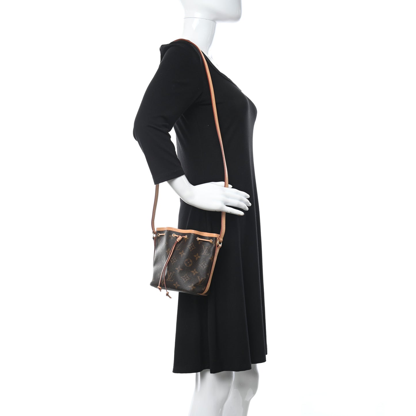 This is an authentic LOUIS VUITTON Monogram Nano Noe. This stylish Louis Vuitton bucket handbag is crafted of traditional Louis Vuitton monogram coated canvas. This bag features signature vachetta leather including a shoulder strap, a cinch cord, and piping with brass hardware. The top opens to a cocoa brown fabric interior.Follow this item for alerts. Louis Vuitton is a registered trademark of Louis Vuitton. FASHIONPHILE is not affiliated with Louis Vuitton.