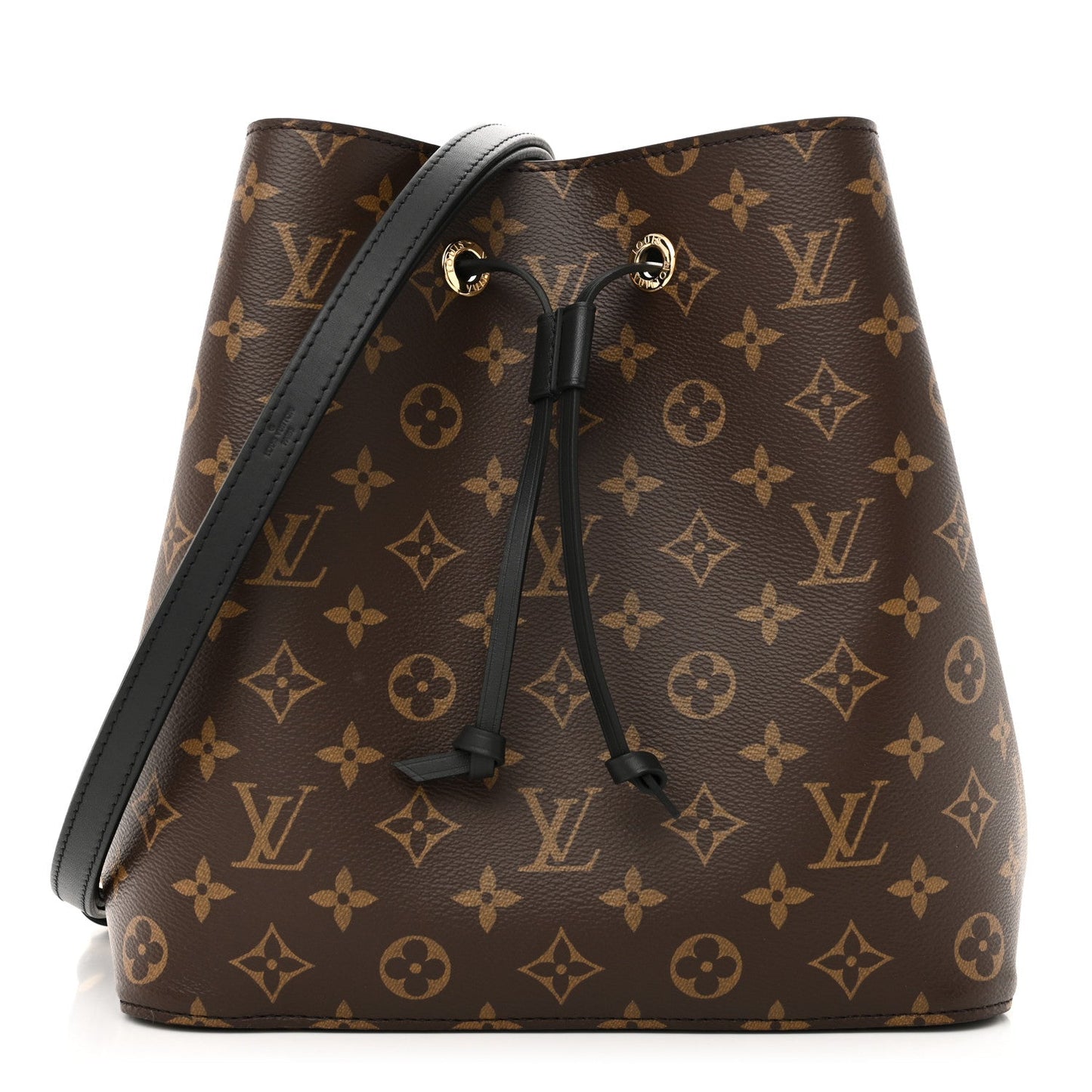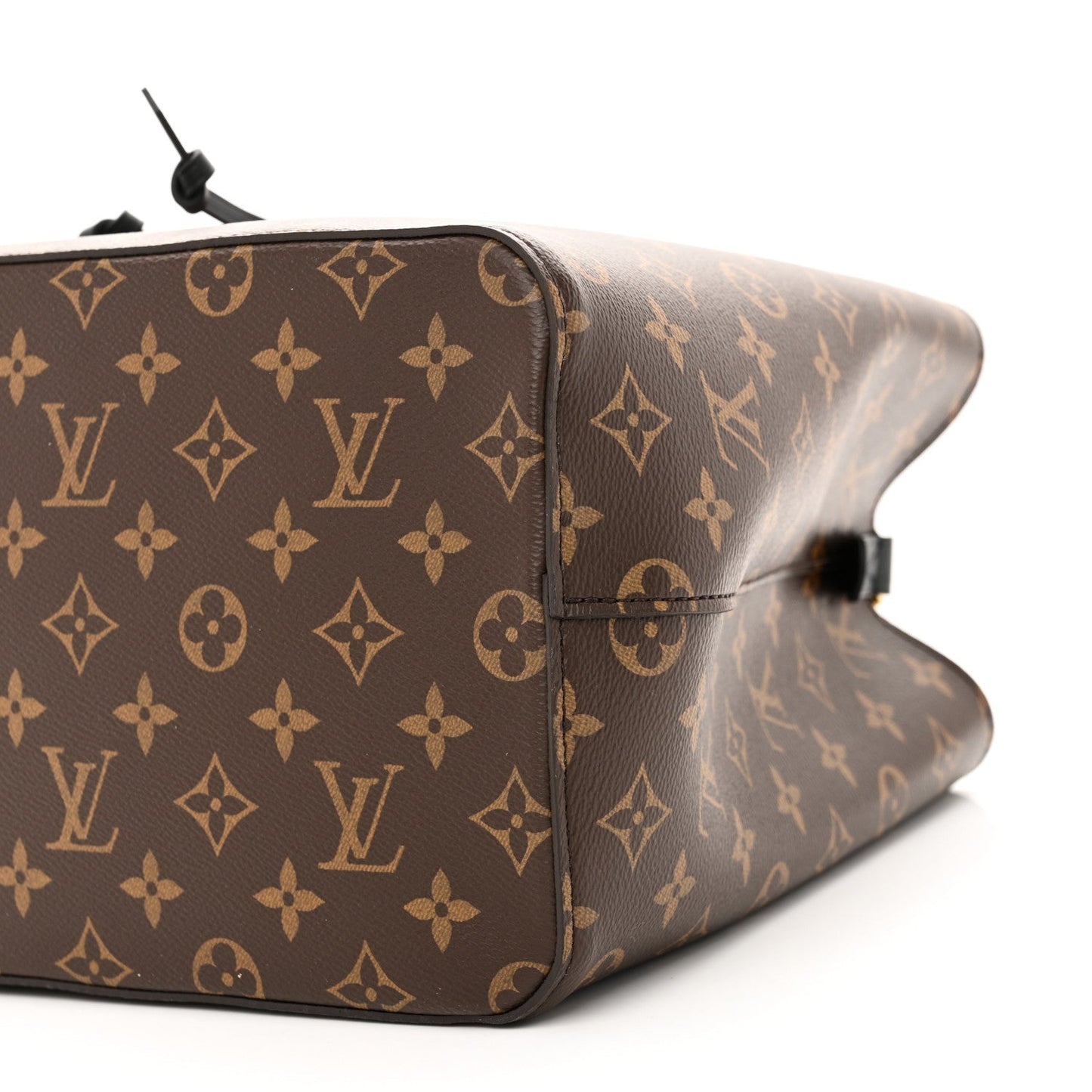 This is an authentic LOUIS VUITTON Monogram Neonoe MM in Black. This classic bucket-style shoulder bag is crafted of Louis Vuitton monogram on coated canvas. The bag features an adjustable black leather shoulder strap with brass hardware and a matching top cinch-cord. This opens the bag to a partitioned black microfiber interior with a zipper compartment.Follow this item for alerts. Louis Vuitton is a registered trademark of Louis Vuitton. FASHIONPHILE is not affiliated with Louis Vuitton.