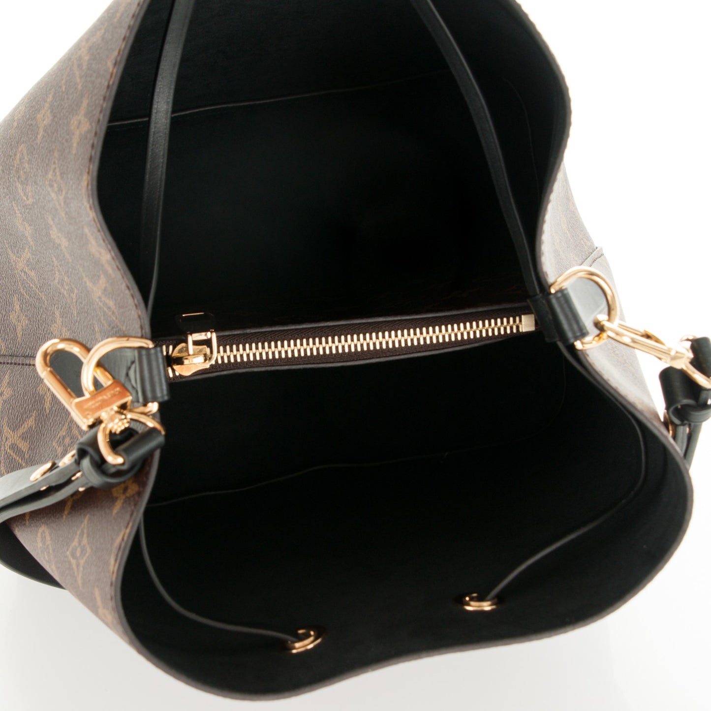 This is an authentic LOUIS VUITTON Monogram Neonoe MM in Black. This classic bucket style shoulder bag is crafted of Louis Vuitton monogram on coated canvas. The bag features a black shoulder strap and top cinch strap with polished brass hardware. This opens to a soft black microfiber interior and center zip pocket to keep you organized. This fresh take on their classic bucket bag is ideal for everyday use, from Louis Vuitton!Follow this item for alerts. Louis Vuitton is a registered trademark of Louis Vuitton. FASHIONPHILE is not affiliated with Louis Vuitton.