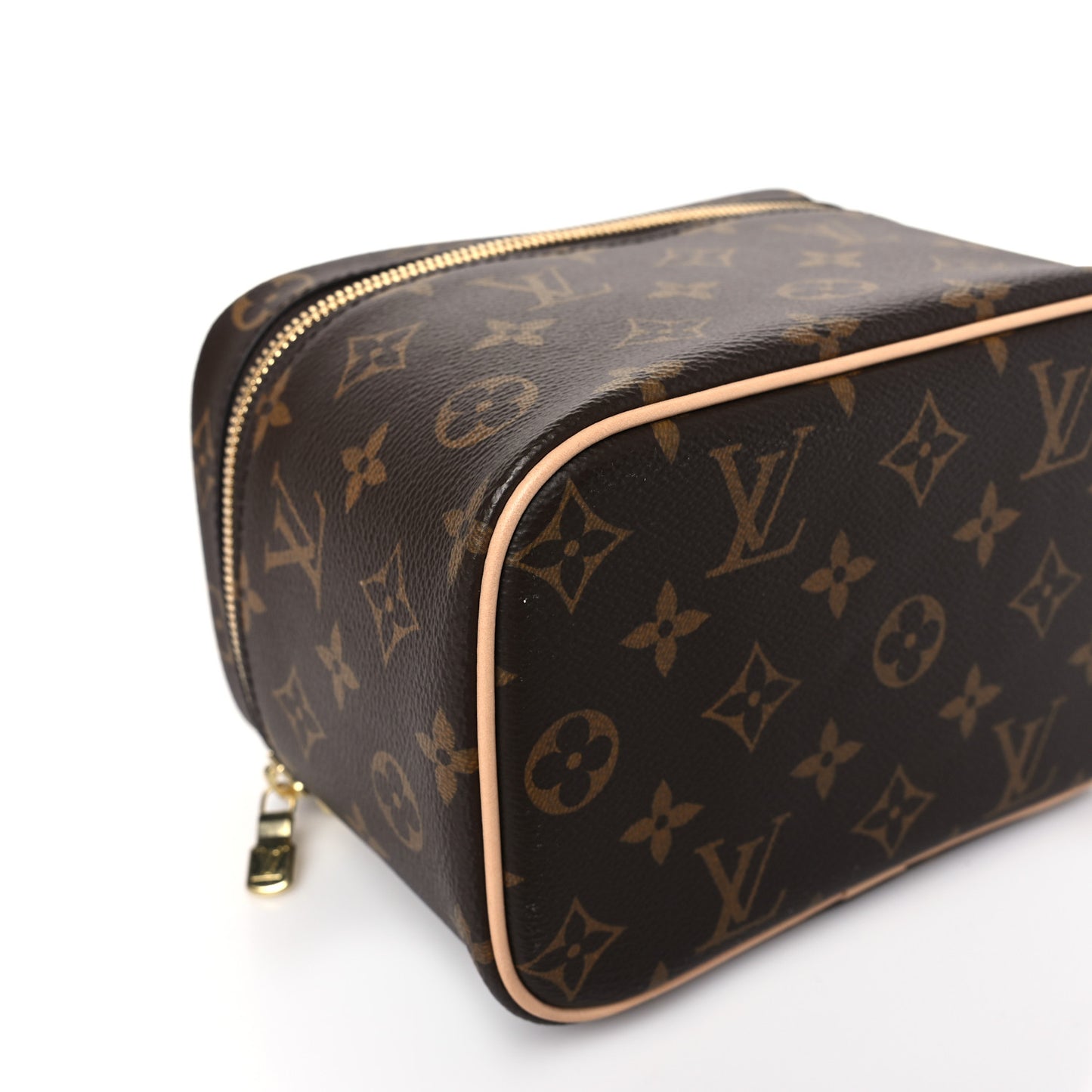 This is an authentic LOUIS VUITTON Monogram Nice Mini. This travel bag is crafted of brown Louis Vuitton monogram canvas. The case features a vachetta cowhide leather top handle and piping trim. The polished brass wrap-around zippers open the bag to a beige leather interior with a patch pocket.Follow this item for alerts. Louis Vuitton is a registered trademark of Louis Vuitton. FASHIONPHILE is not affiliated with Louis Vuitton.