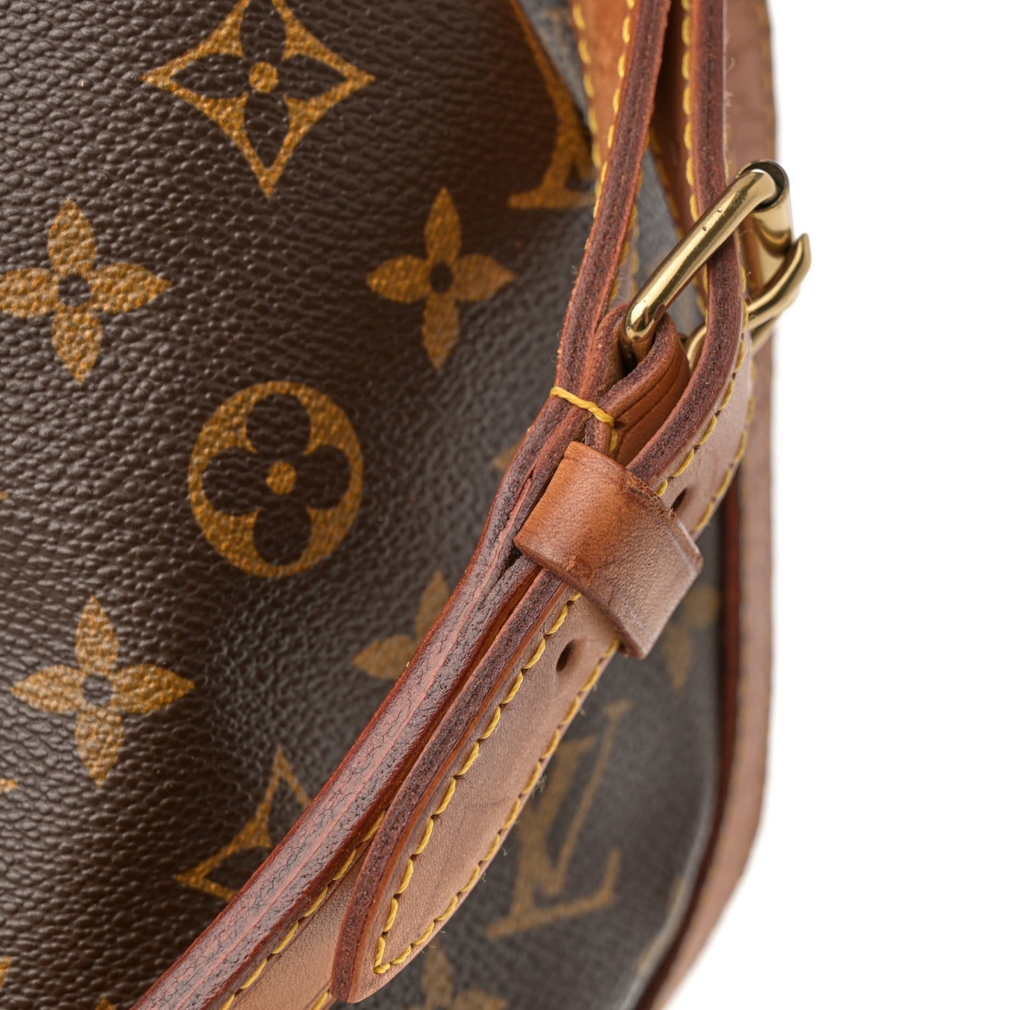 Handle: Edge wear, scuffs, patina of vachetta, liquid marks