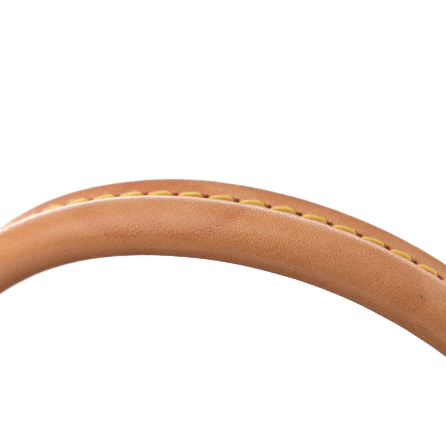Handle: Edge wear, scuffs, patina of vachetta, liquid marks