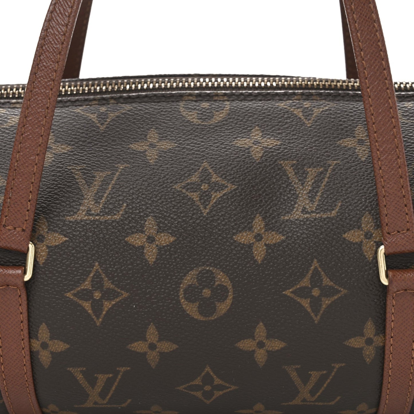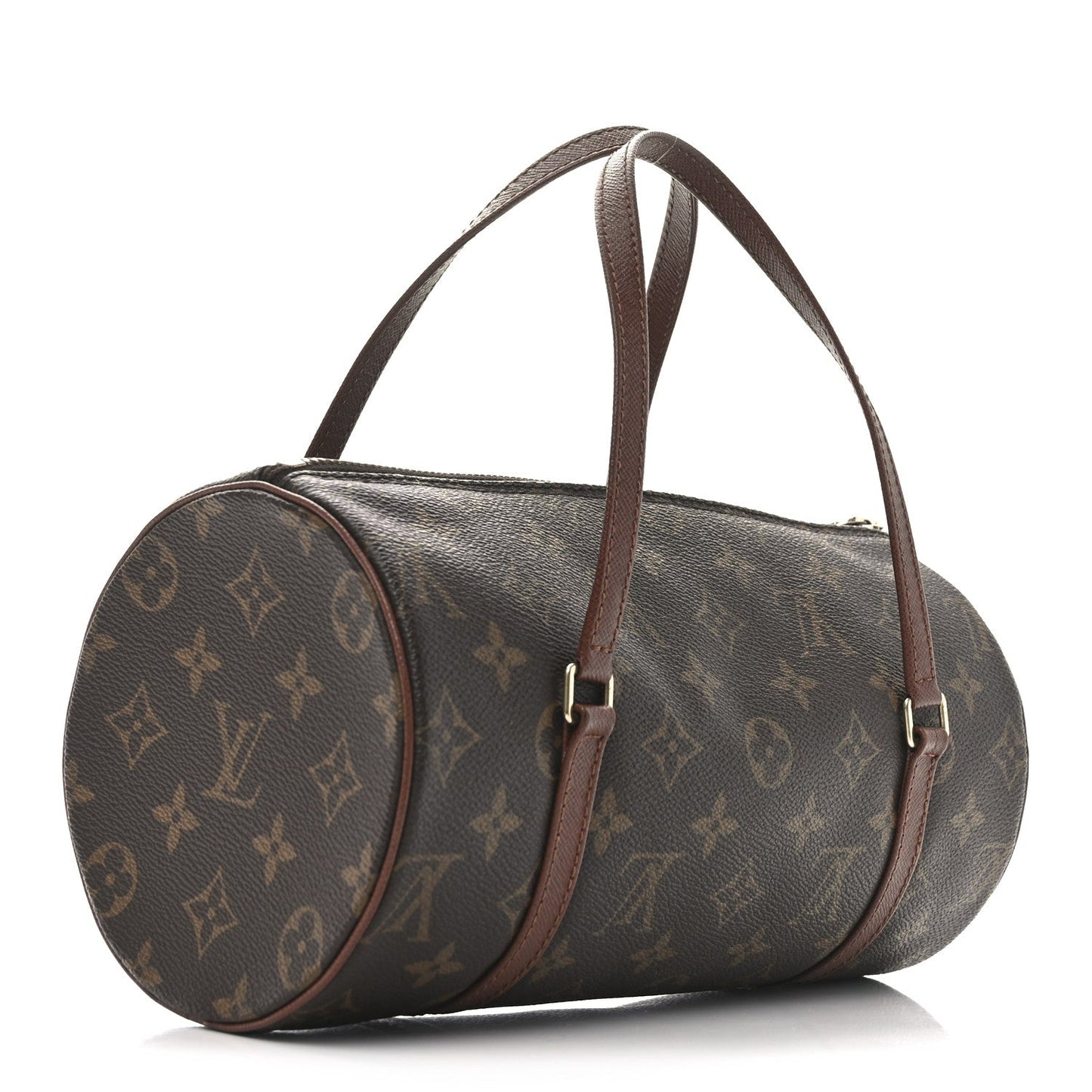 This is an authentic LOUIS VUITTON Monogram Papillon 26. This barrel-style handbag is crafted of signature Louis Vuitton monogram coated canvas. The bag features vachetta leather piping and trim that extends into strap handles. The brass top zipper opens to a brown cross-grain leather interior.Follow this item for alerts. Louis Vuitton is a registered trademark of Louis Vuitton. FASHIONPHILE is not affiliated with Louis Vuitton.