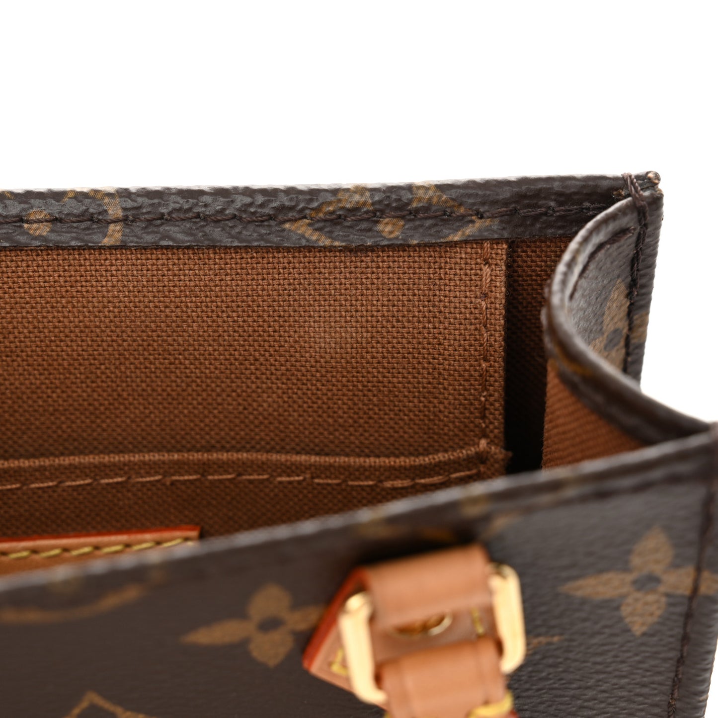 This is an authentic LOUIS VUITTON Monogram Petit Sac Plat. This stylish tote is finely crafted of classic Louis Vuitton on monogram toile canvas, with signature vachetta cowhide leather top handles, optional shoulder strap, and gold tone hardware. The top is open to a brown fabric interior with a patch pocket.Follow this item for alerts. Louis Vuitton is a registered trademark of Louis Vuitton. FASHIONPHILE is not affiliated with Louis Vuitton.