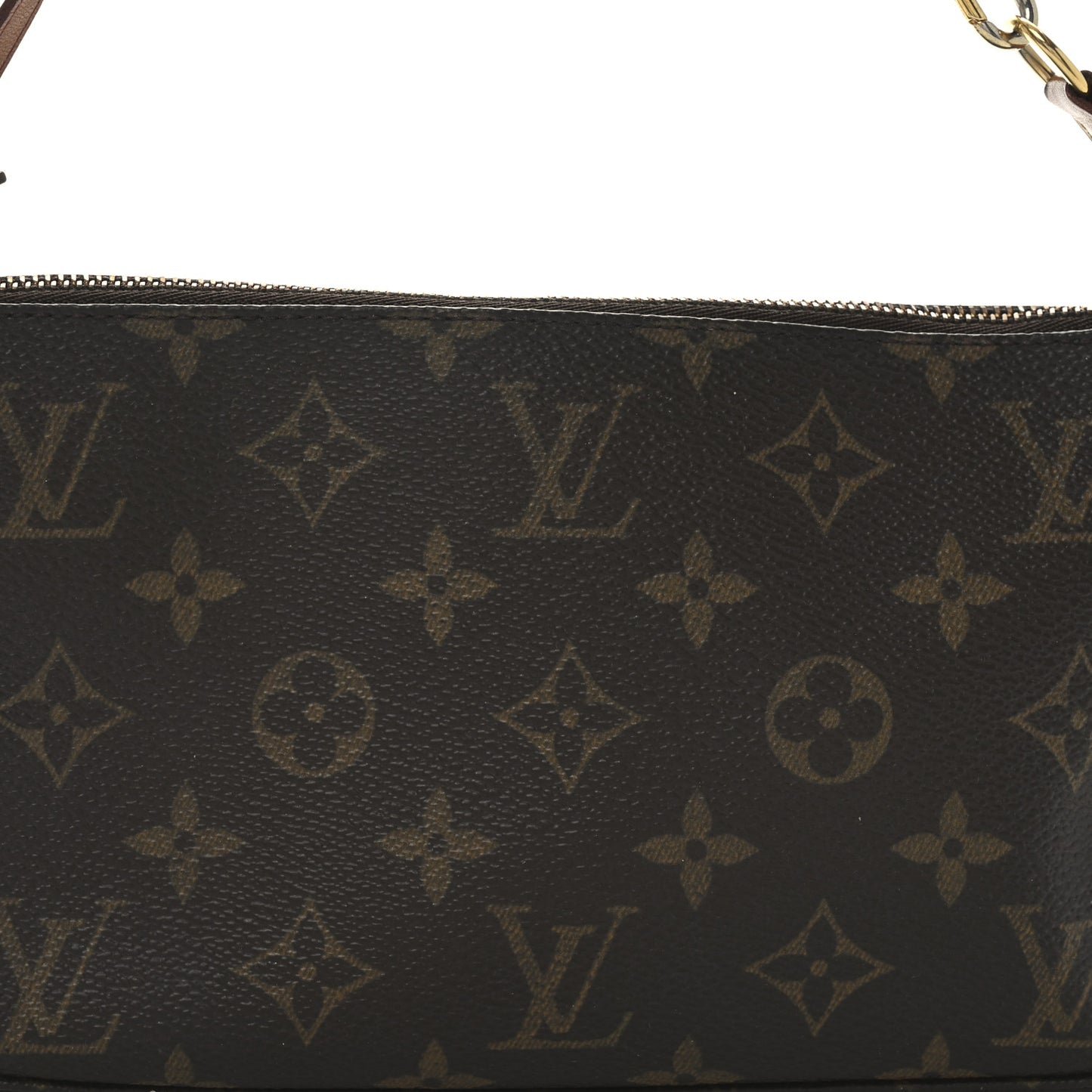 This is an authentic LOUIS VUITTON Monogram Pochette Accessories. This pochette is crafted of signature Louis Vuitton monogram coated canvas. The bag features polished gold hardware, a vachetta strap, and a gold top zipper that opens to a brown fabric interior.Follow this item for alerts. Louis Vuitton is a registered trademark of Louis Vuitton. FASHIONPHILE is not affiliated with Louis Vuitton.
